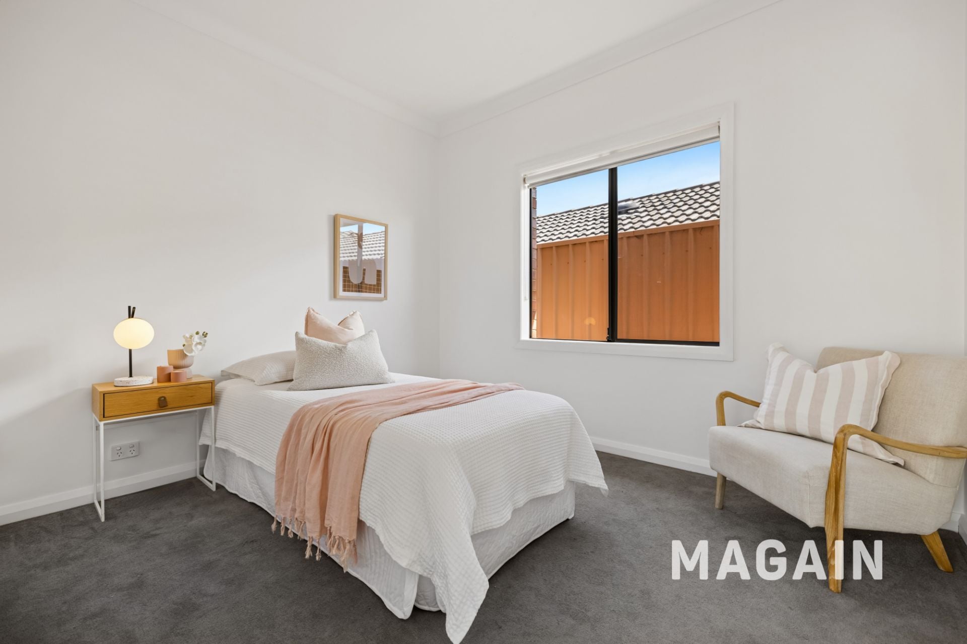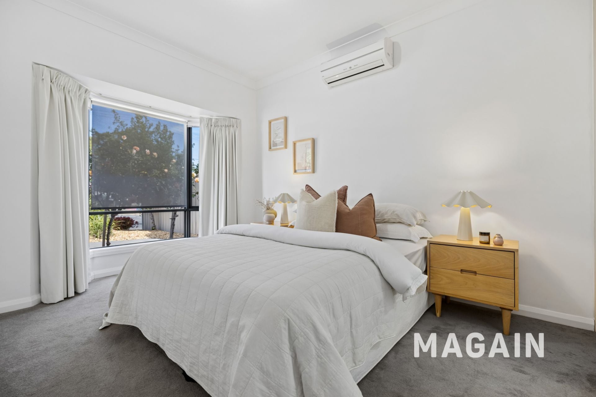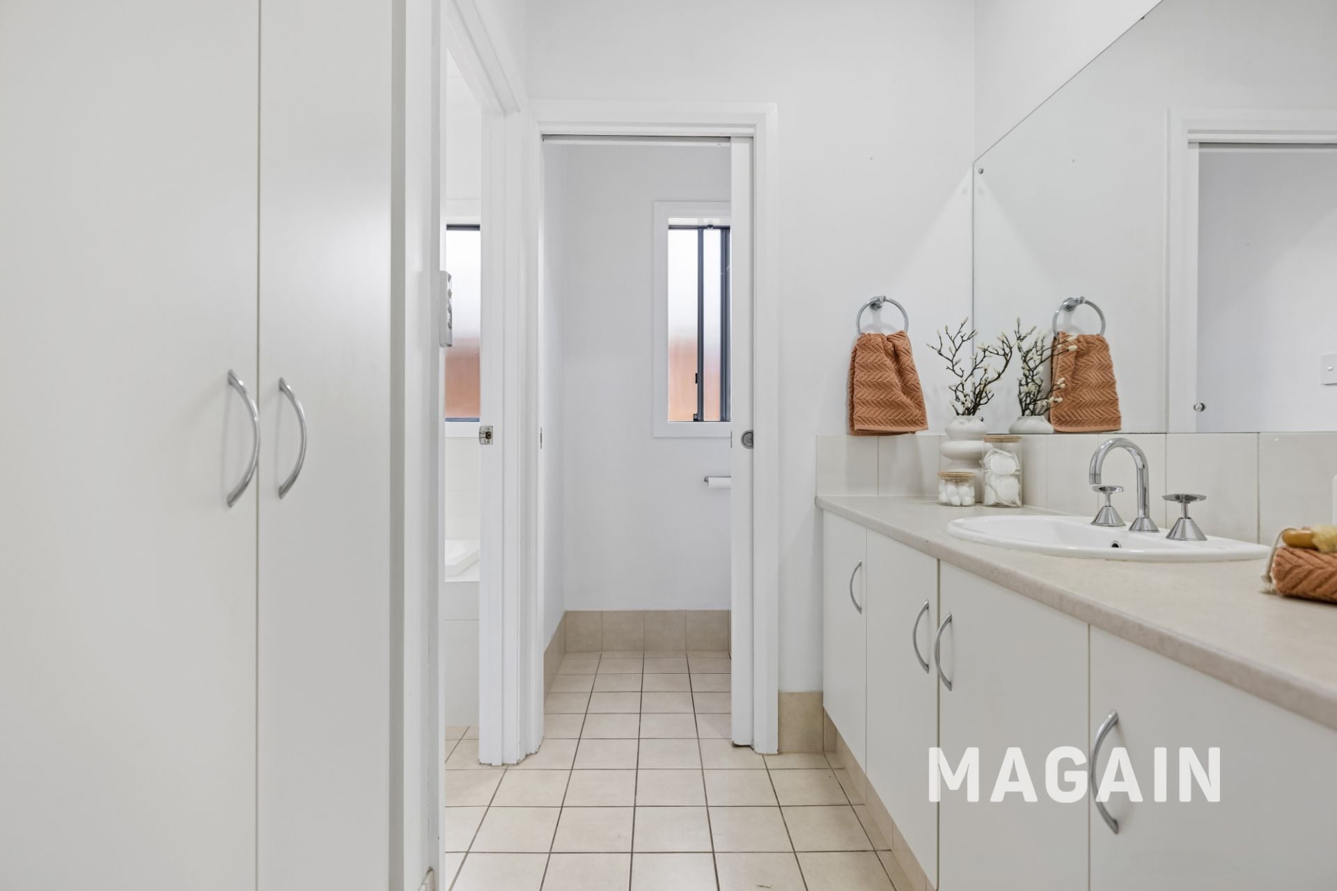 The home comprises three well-proportioned bedrooms. The master bedroom features a spacious walk-through wardrobe with convenient two-way access to the main bathroom, while bedrooms two and three are fitted with built-in robes.