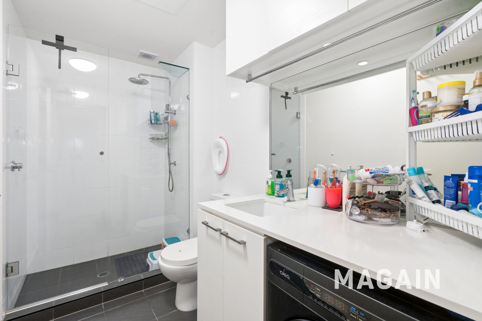 - Contemporary bathroom combined with laundry facilities for convenience