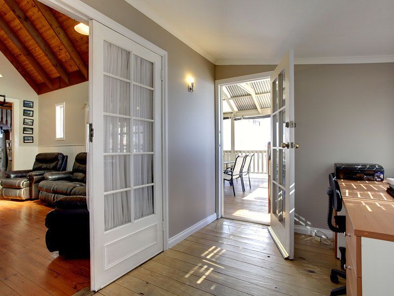 French doors give access to the study/sunroom/4th bedroom which is located at the rear of the home. There are 2 large bedrooms upstairs, the main is fitted with a split system air conditioner, both offer ceiling fans and boast captivating outlooks.