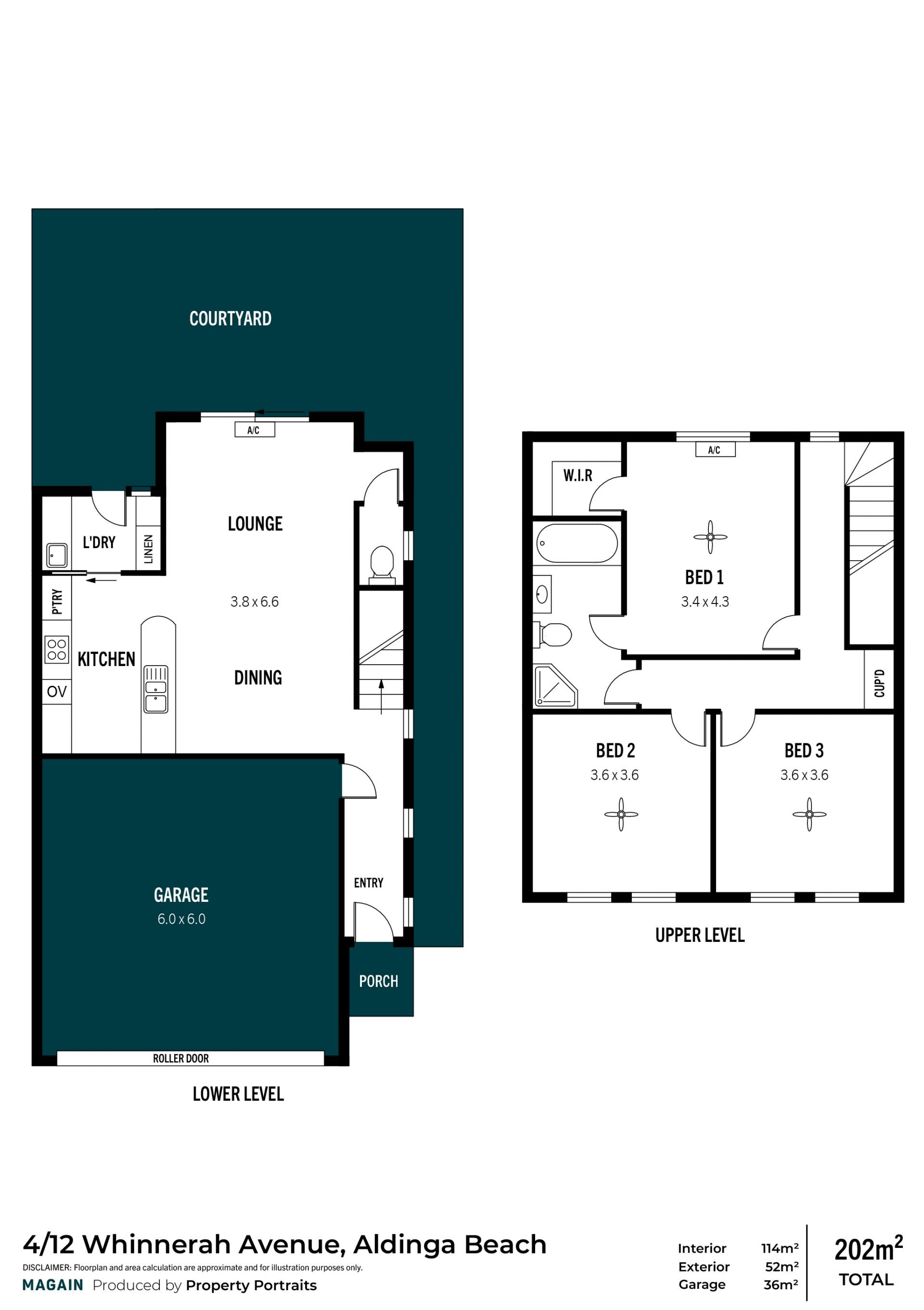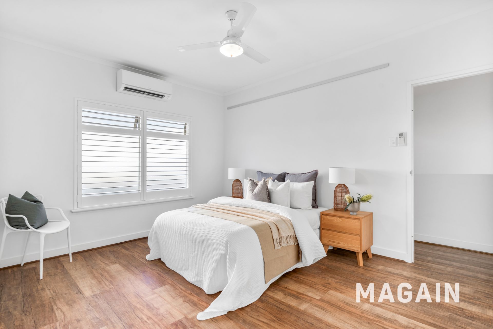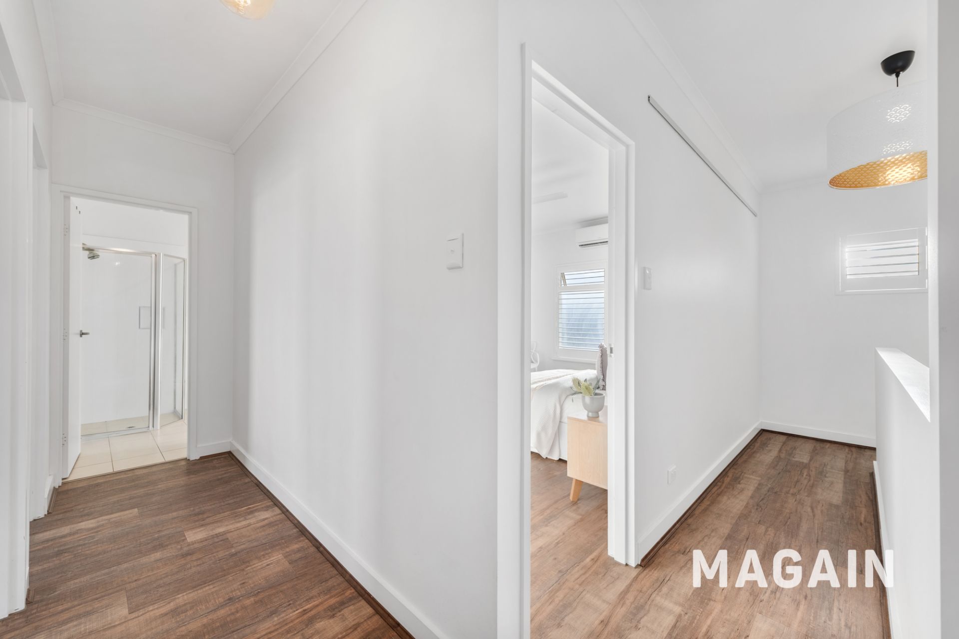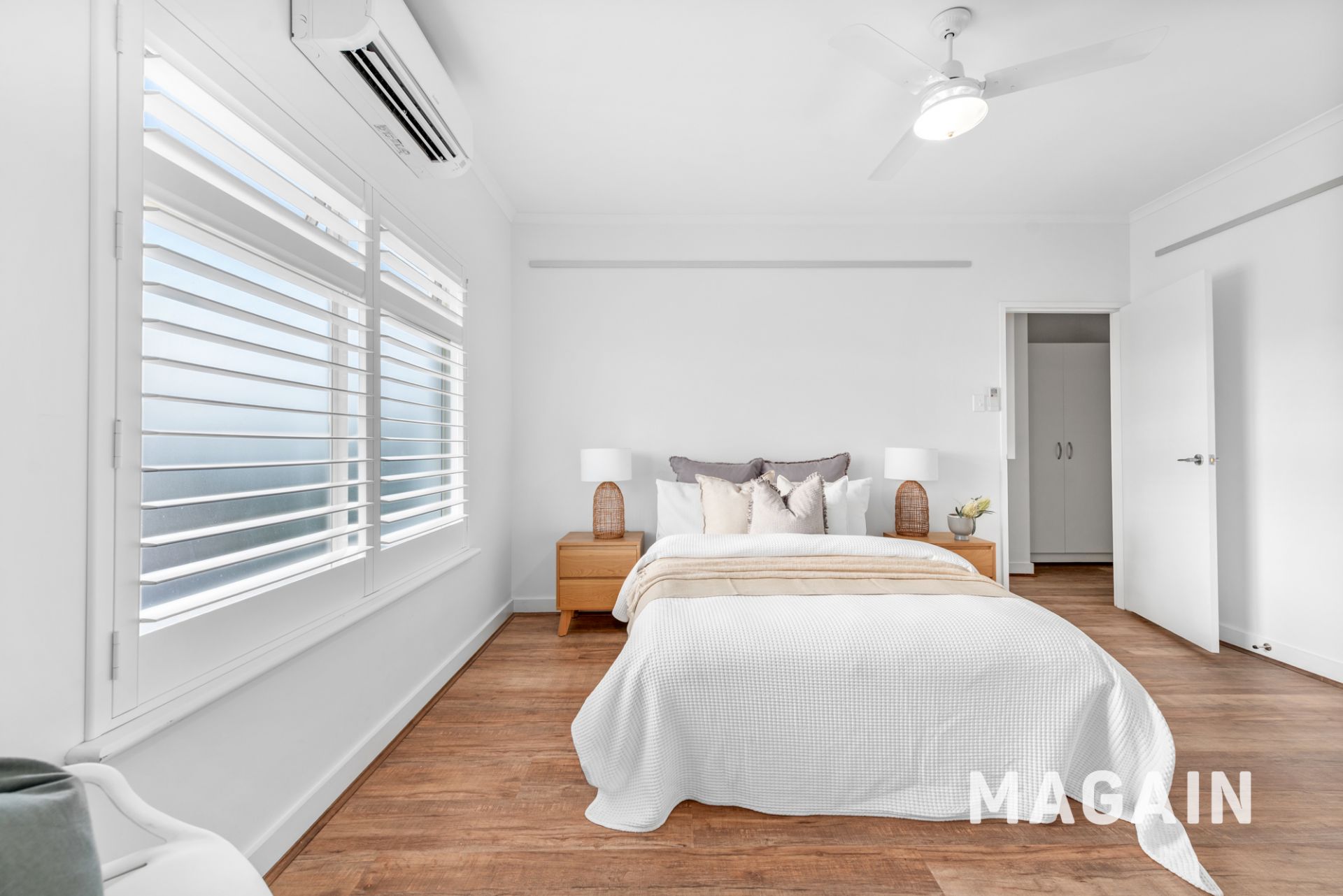 Comfort is assured year-round with split system air conditioning on both levels, complemented by ceiling fans in each bedroom to enhance airflow. Sliding doors connect the living area to a private, manicured courtyard, creating an ideal space for outdoor dining, entertaining or simply unwinding after a day at the beach.