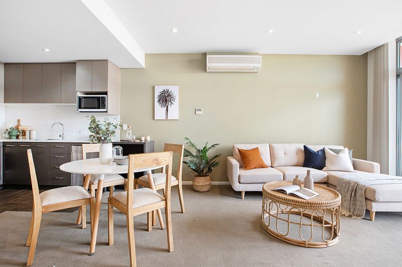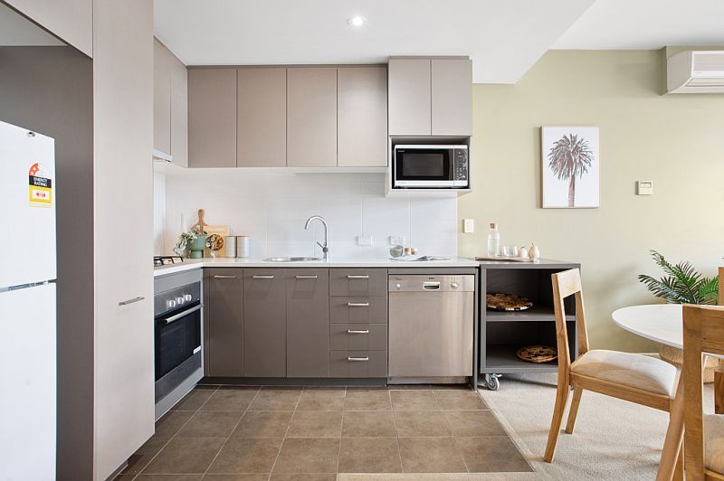 The spacious bedroom has built in robes and there's plenty of cupboard space in the modern kitchen and bathroom, which also contains a European laundry. The split system air conditioning in the lounge keeps the whole unit climate controlled.