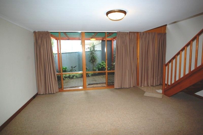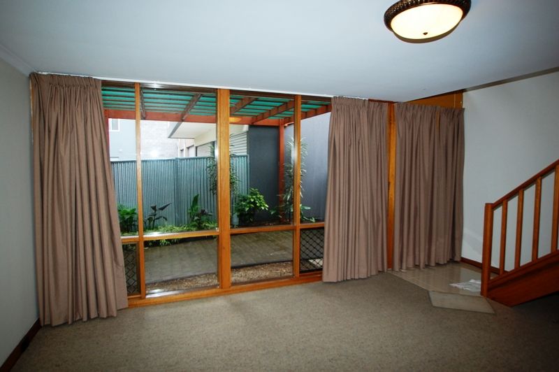 Located on the lower level is the living area. Large lounge with new curtains and lovely outlook to the private parking/courtyard area.