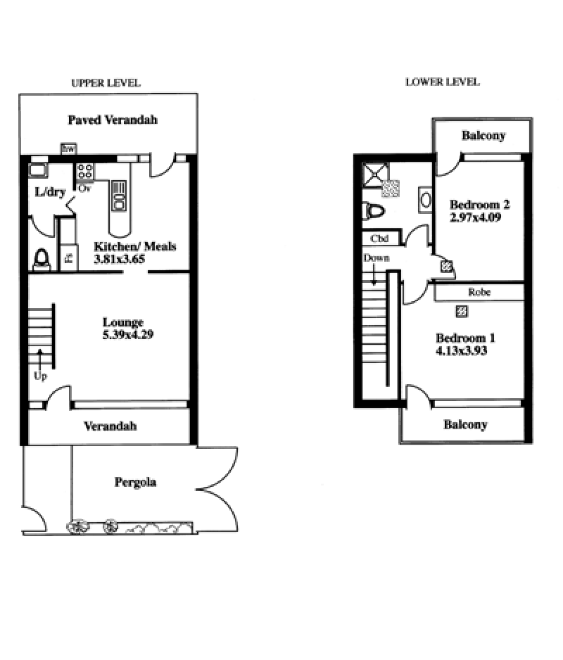 The upper level consists of two spacious bedrooms main with built in robes, balcony, new carpets and curtains. The second bedroom also has a balcony, new carpets and curtains.