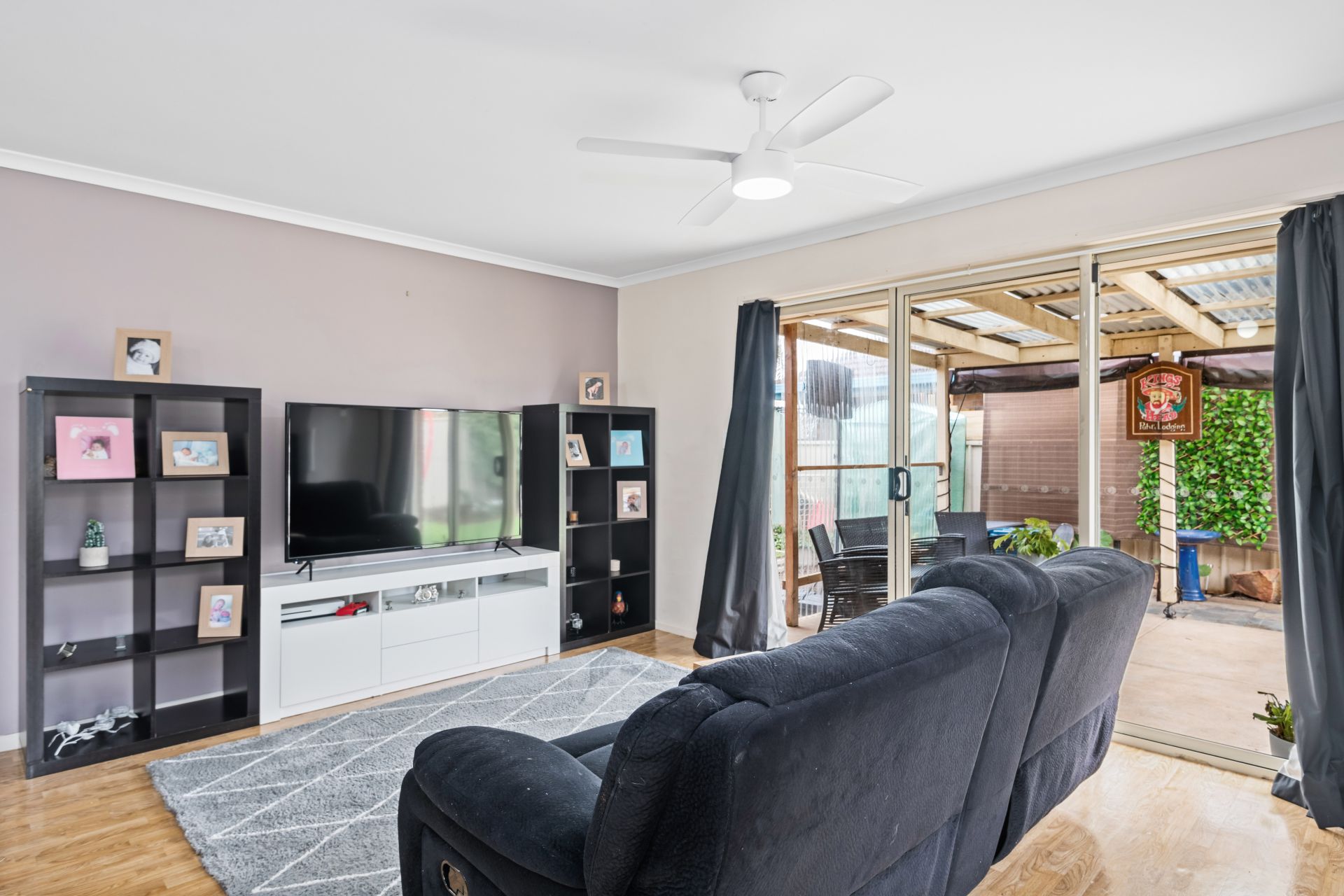 > Living room with split system air conditioning