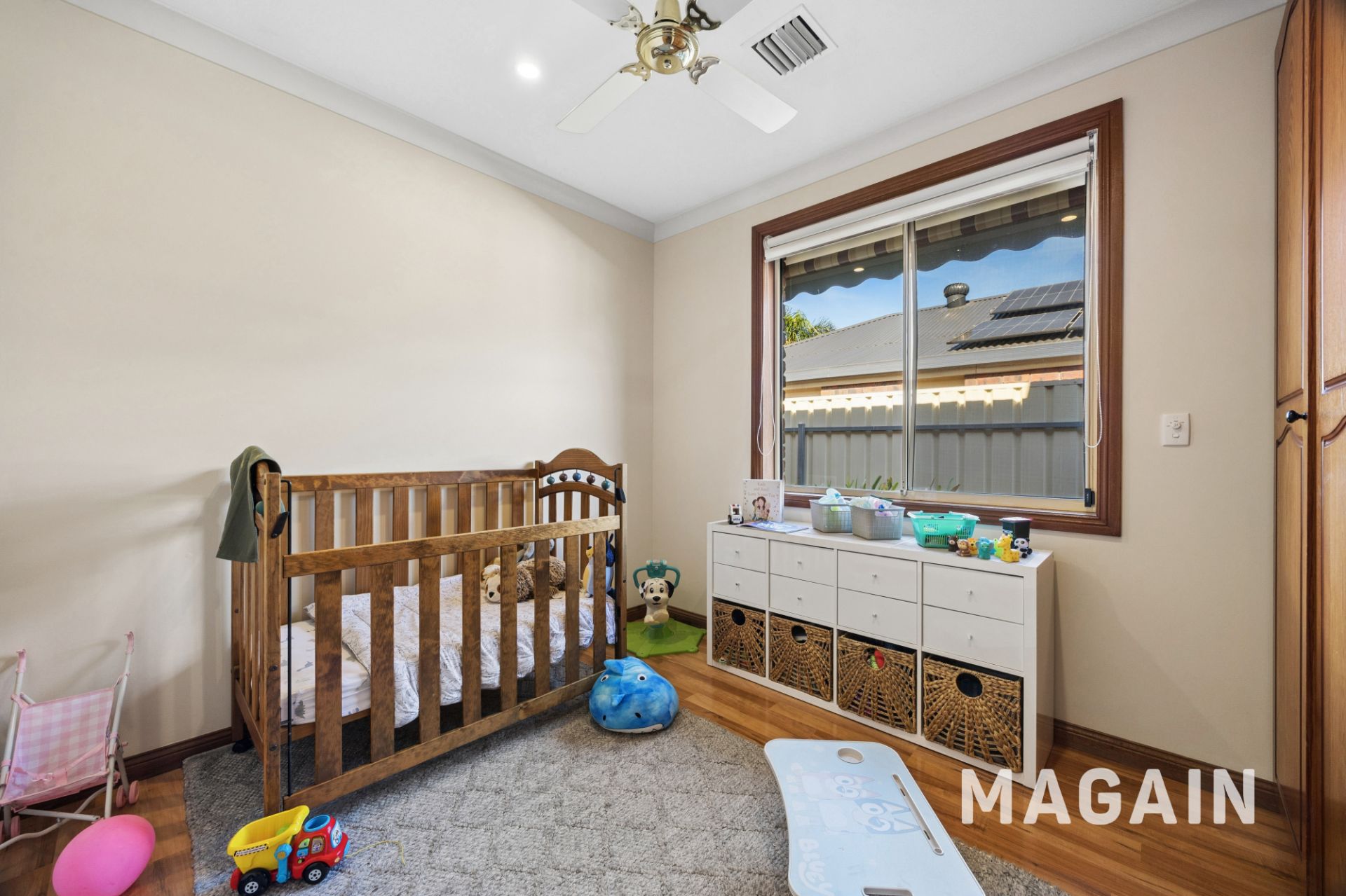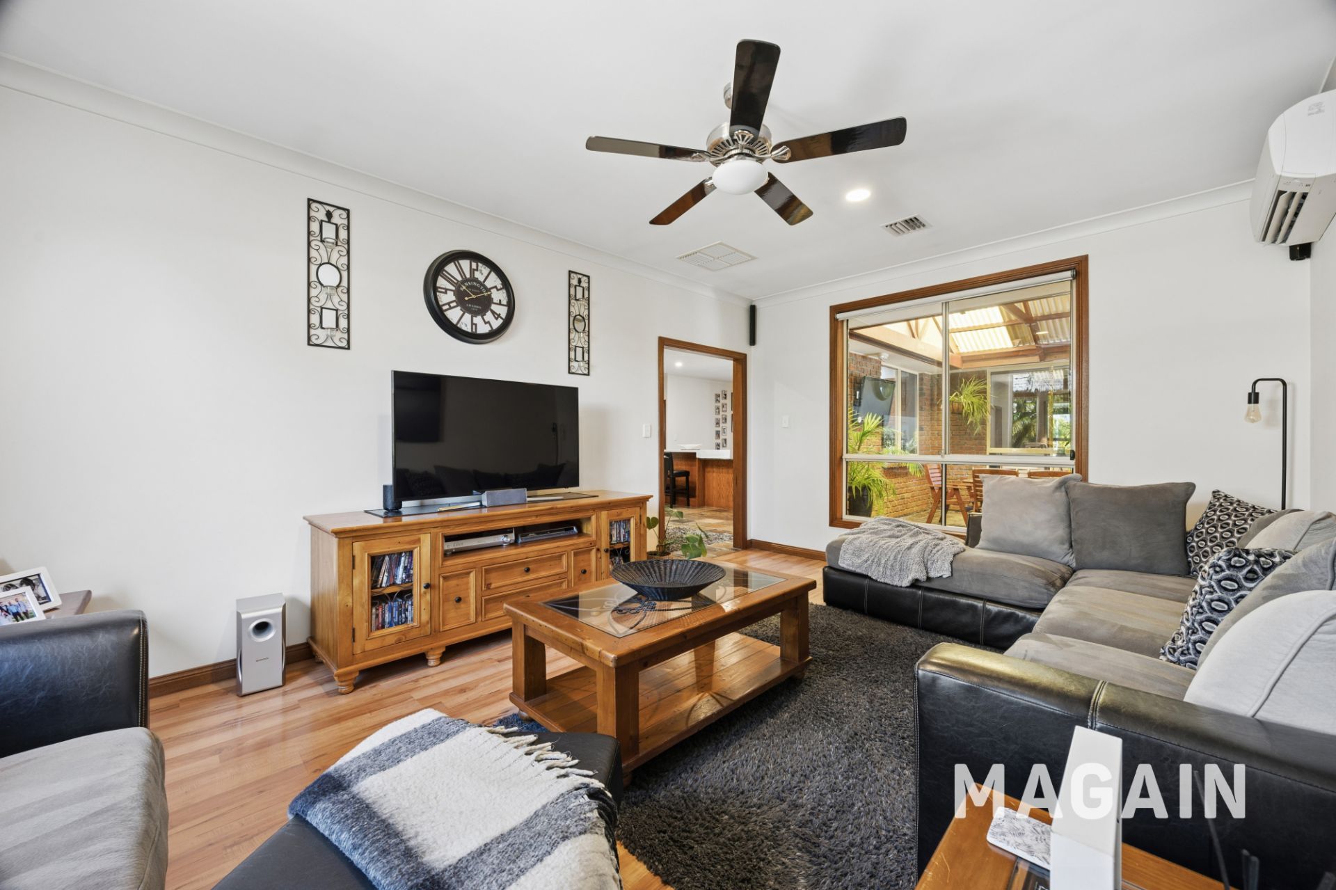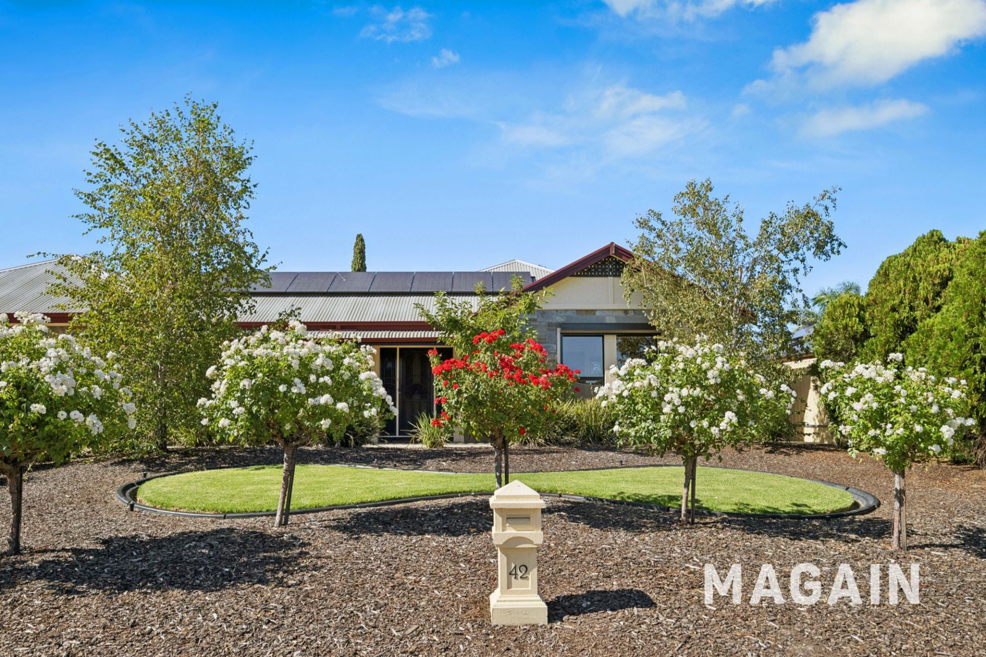Comfort and efficiency are assured year-round with evaporative air conditioning, gas central heating, roller shutters to the front for security, and a 5.5kW solar system supporting reduced running costs.