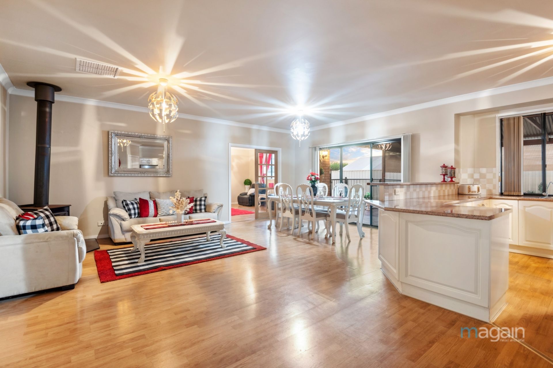 Expanding into the heart of the home the open-plan kitchen and dining area, accompanied by a third lounge/family room. The spacious kitchen boasts ample bench and storage space, featuring a convenient corner pantry, facilitating effortless meal preparation while hosting gatherings. The open plan area is complete with a glass sliding doors out onto your decked pergola providing indoor and outdoor entertaining. Complementing the inside are three additional generously-sized bedrooms, each equipped with built-in robes. These bedrooms are serviced by a neat and tidy main bathroom with seperate toilet and vanity for additional convenience.