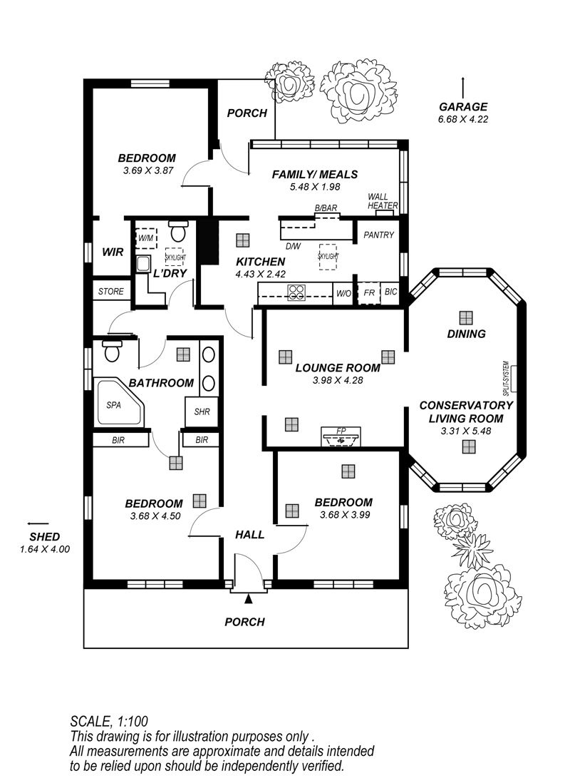 Offering excellent accommodation including three good size bedrooms, cosy lounge room with plenty of space and nice high ceilings, adjoining North facing conservatory and dining area with large bay windows taking advantage of the warm winter sun.