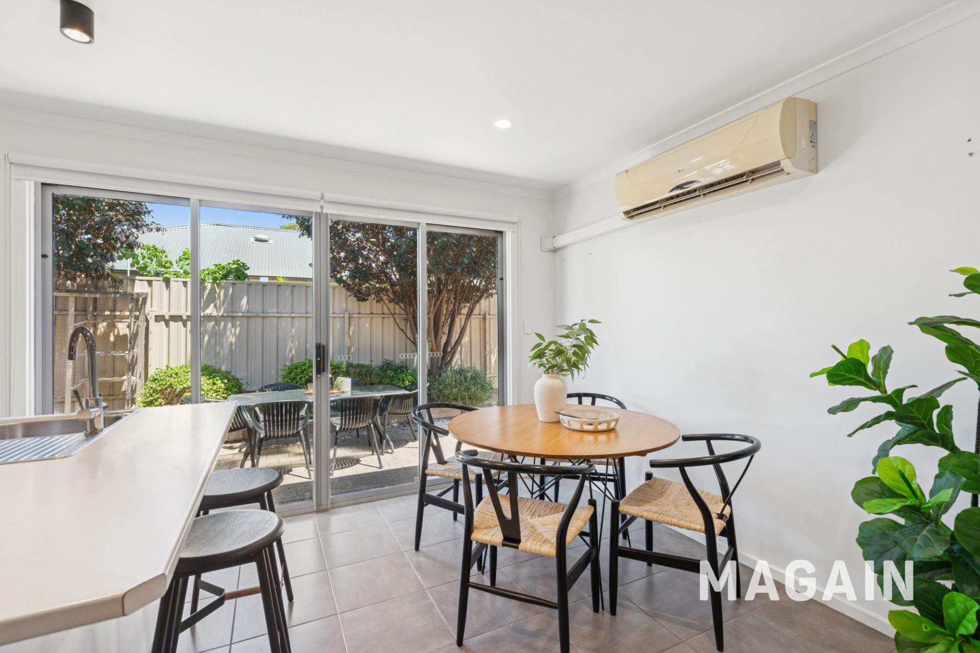 At the rear of the home is the well-equipped kitchen which comes with loads of storage, breakfast bar, stainless steel gas cooker and dishwasher. The home also features a split system air conditioner, ensuring year-round comfort, while sleek tile flooring adds a touch of modern elegance throughout. The living and dining area seamlessly open out to a low maintenance private area where you can entertain guests or simply relax.