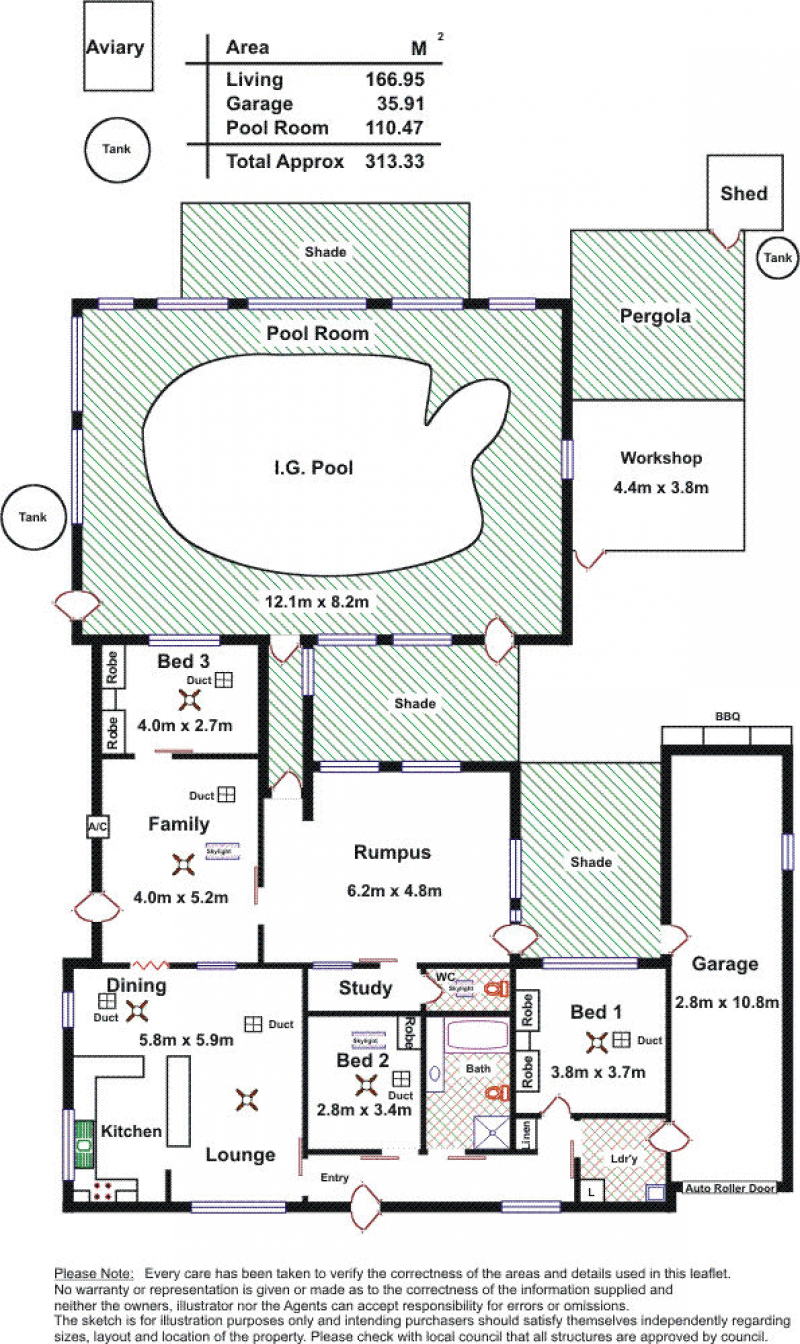 Featuring three bedrooms-all with built-in's & ceiling fans, open plan lounge/meals & kitchen, separate family room & large rumpus room. Spacious central bathroom is in good condition with handy second toilet & study nook located off the rumpus room. The in-ground indoor swimming pool with hand painted mural is something spectacular and with solar heating it will be appreciated all year round. Some of the many added bonuses include ducted gas heating, reverse cycle air conditioner in the family room, auto roller shutters on most windows & beautiful feature leadlight windows throughout. This home has been created to be wheelchair friendly with no steps through the home.