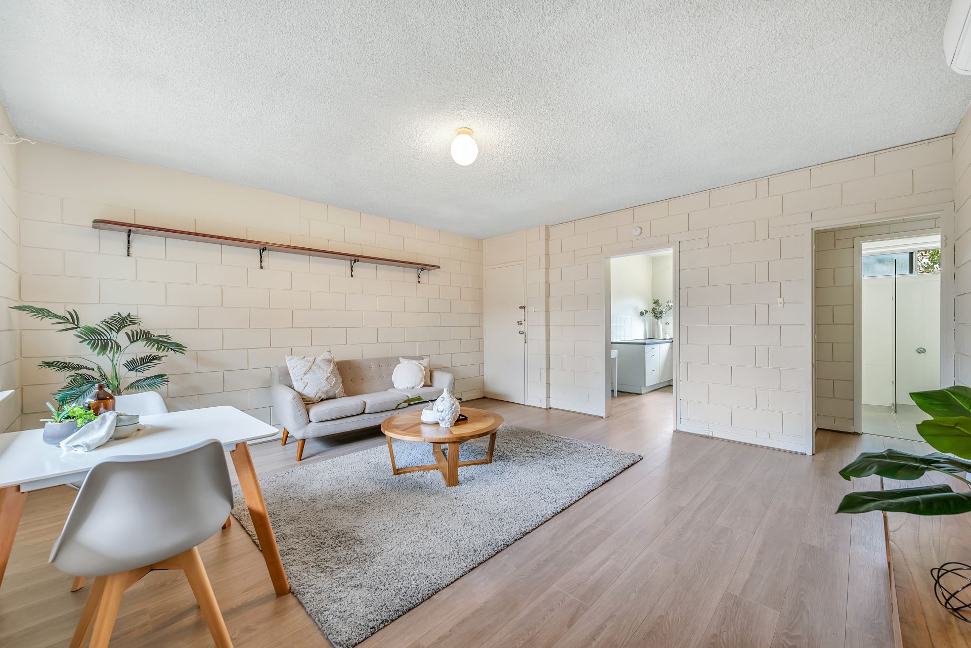 A renovated ground floor Strata unit in handy location. Two spacious bedrooms with robes, updated kitchen with ample cupboards, large lounge with split system air conditioner and a nicely updated bathroom/laundry. It also has new laminated flooring throughout. Parking at rear.
