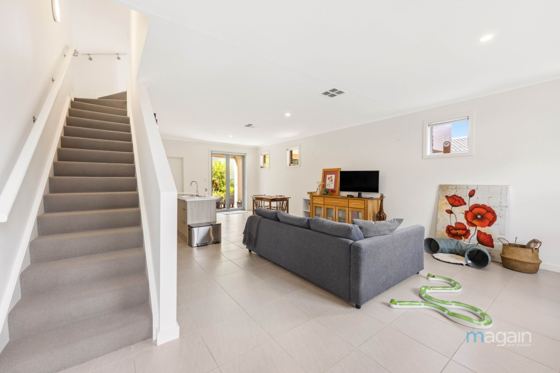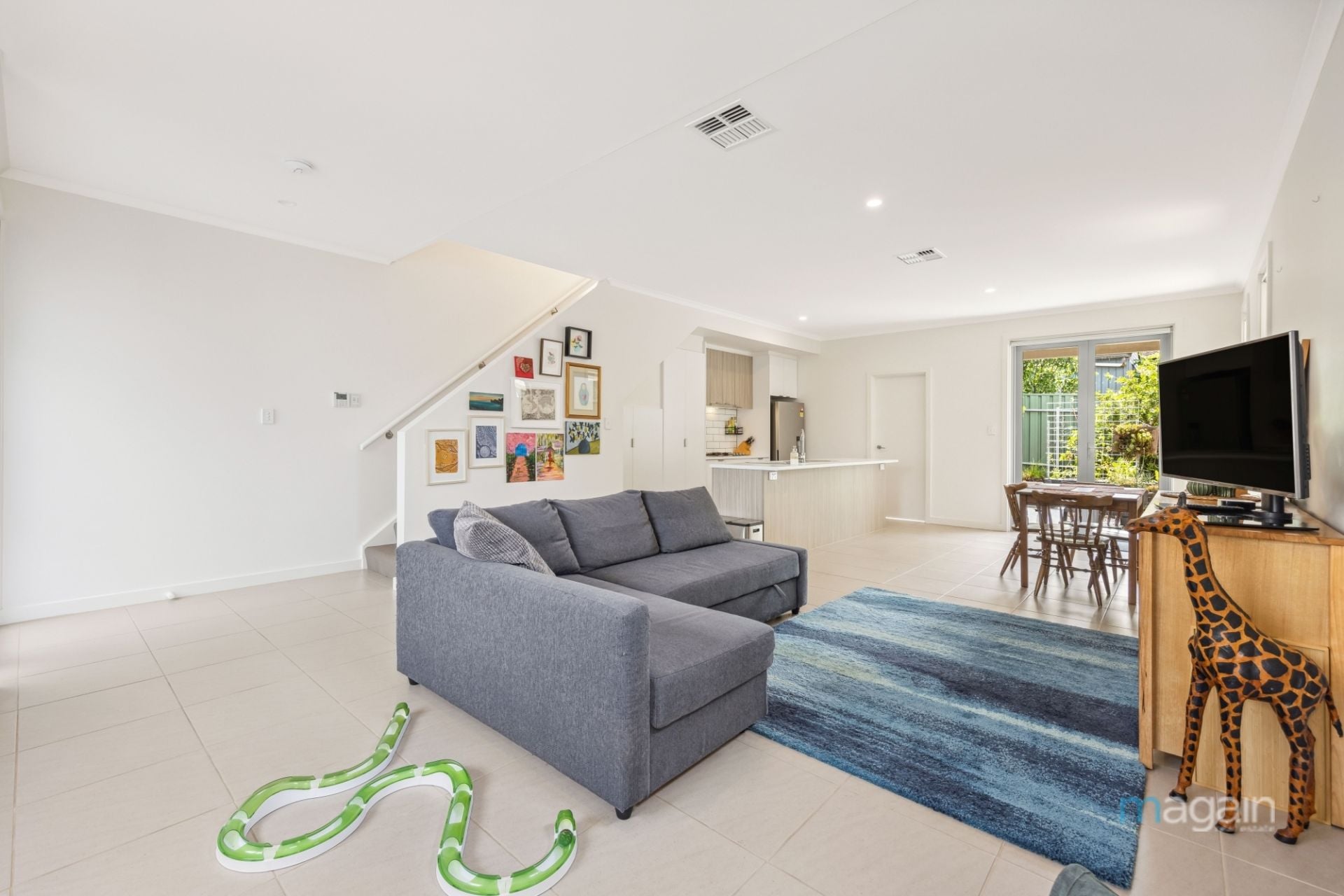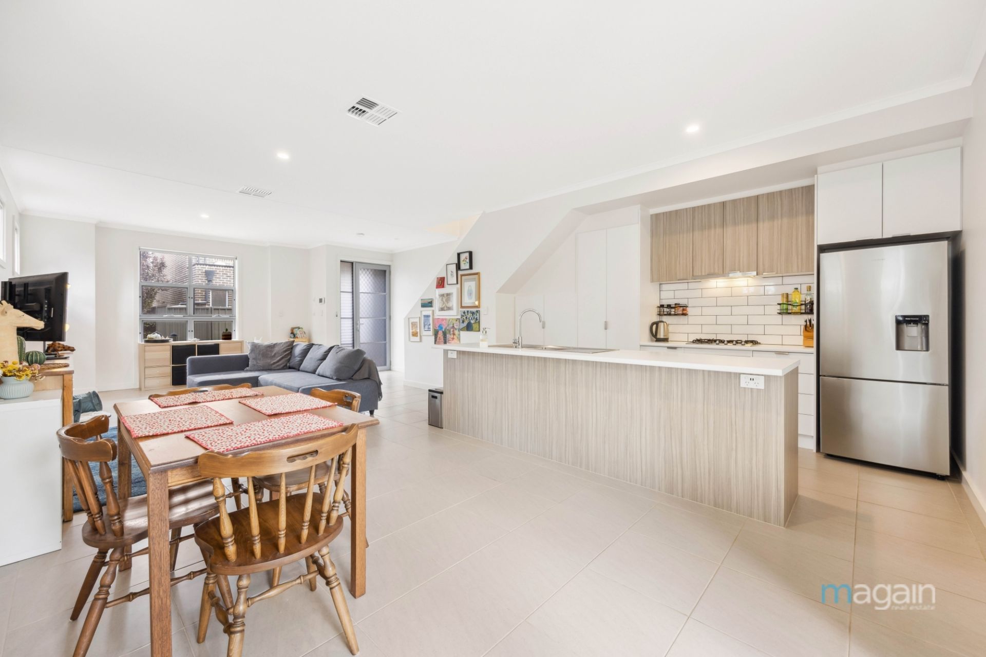 > light and bright open plan living/dining/deluxe kitchen equipped with stylish stainless steel appliances and many other amazing features