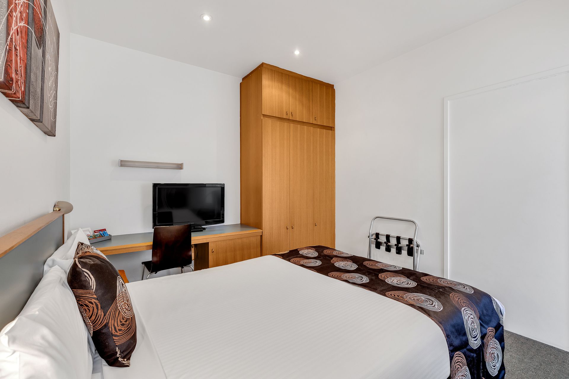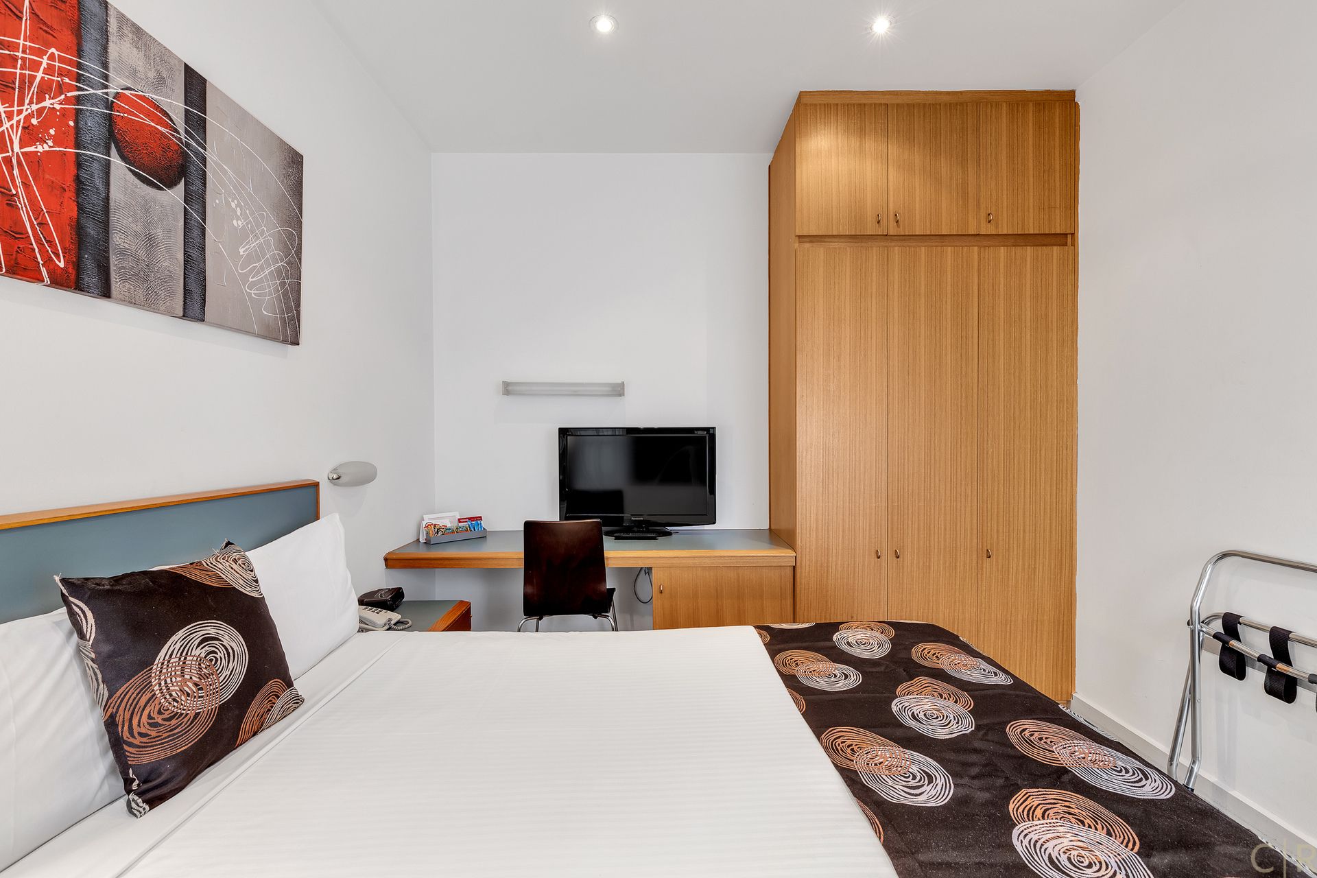 This 17 sqm apartment has ample cupboard space, a study bench, separate bathroom consisting of a vanity, spacious shower & toilet and comes complete with a split system reverse cycle air-conditioner.