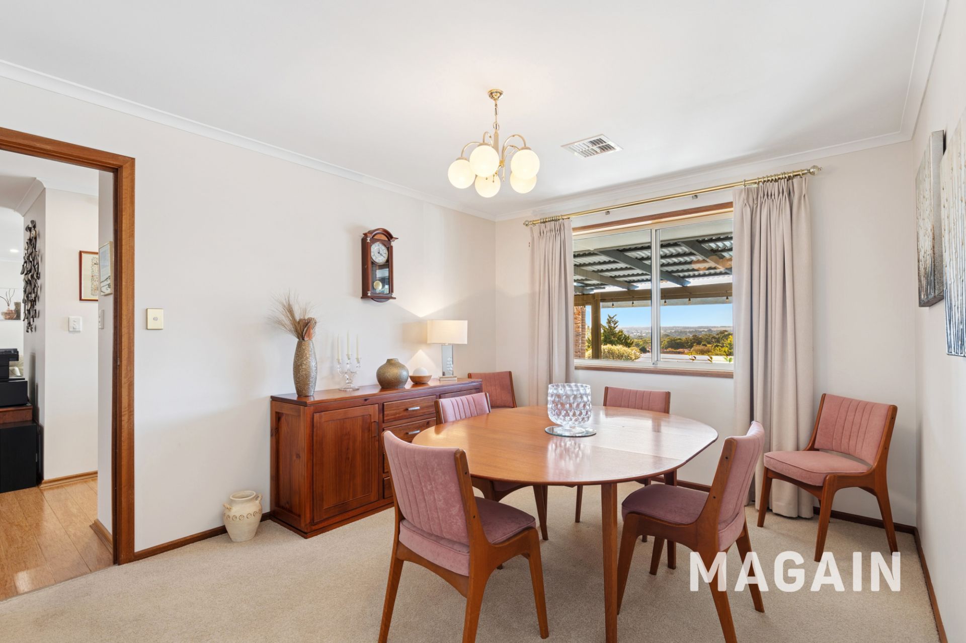 Step inside and you're greeted by a welcoming front lounge, where multiple picture windows bathe the space in natural light and frame sweeping views over Woodcroft. Just adjacent, the formal dining area offers the perfect setting for family meals and special gatherings. Year-round comfort is assured with ducted evaporative air conditioning and ducted gas heating throughout the home.