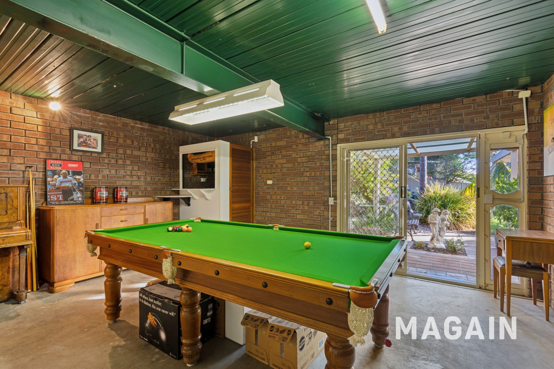 For secure vehicle storage, the property features a single garage, single carport, and double garage, all with roller doors. There's also additional driveway space to accommodate extra vehicles if needed. The double garage is currently set up as a billiard room, but it offers flexible potential, ideal as a teenage retreat, home gym, or additional storage space.