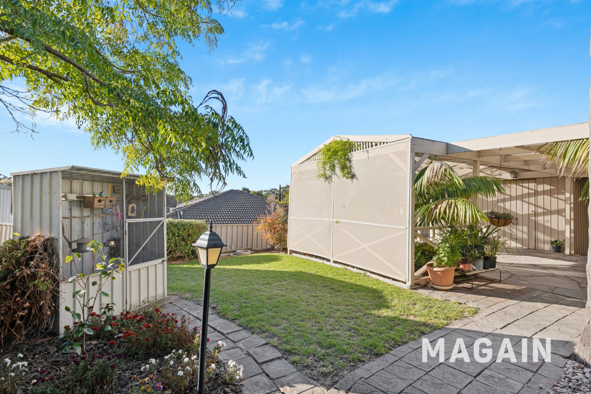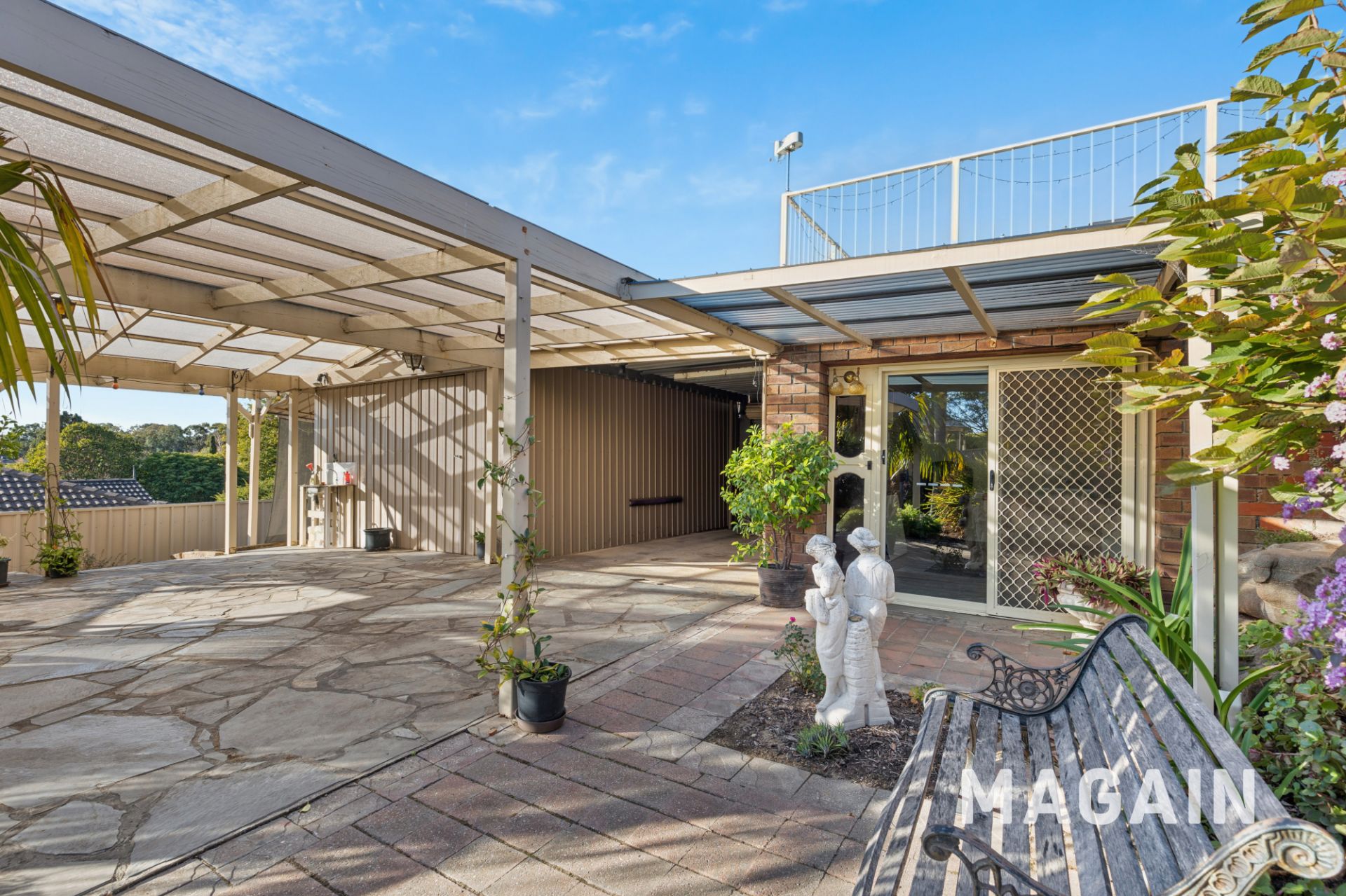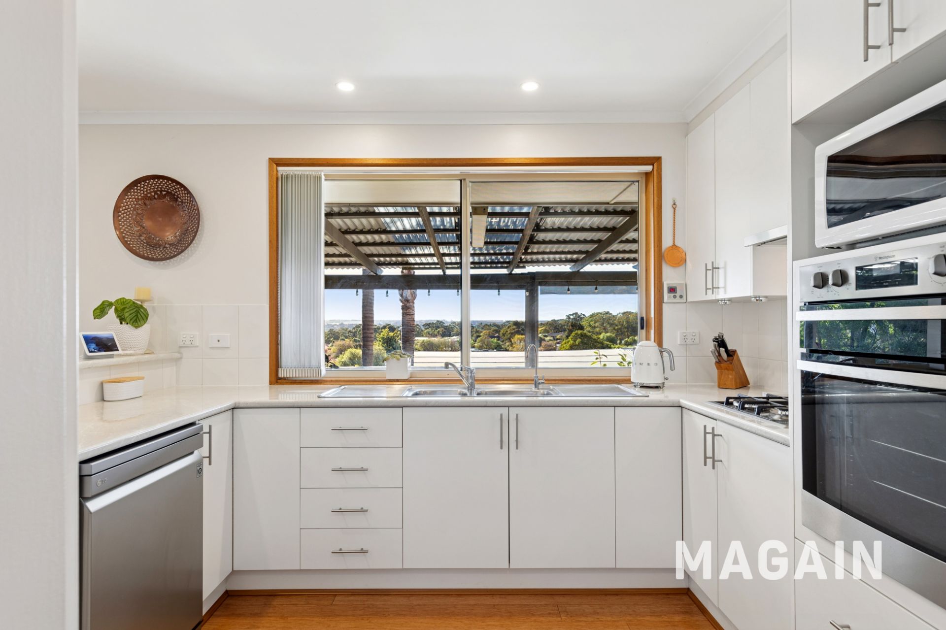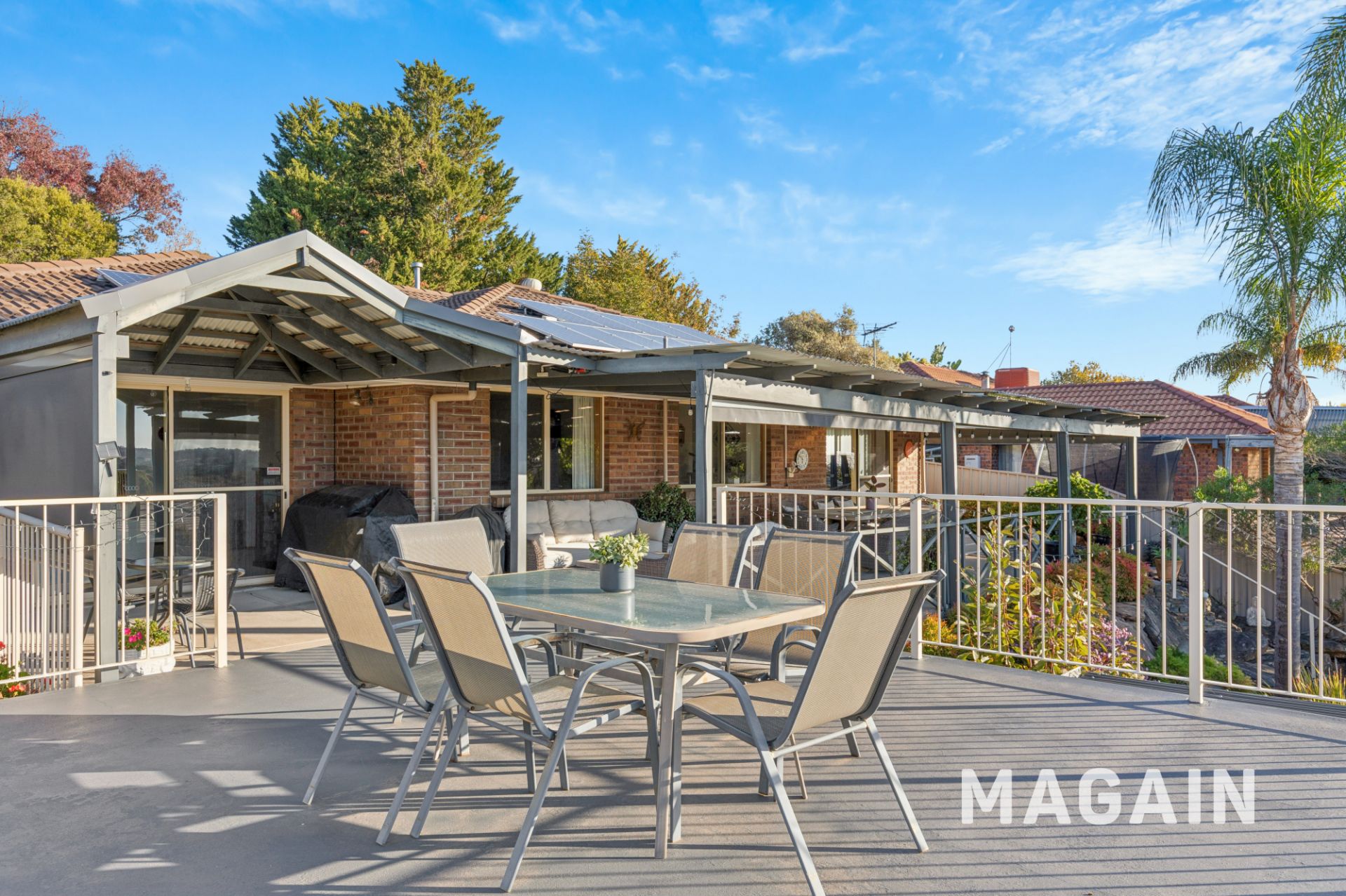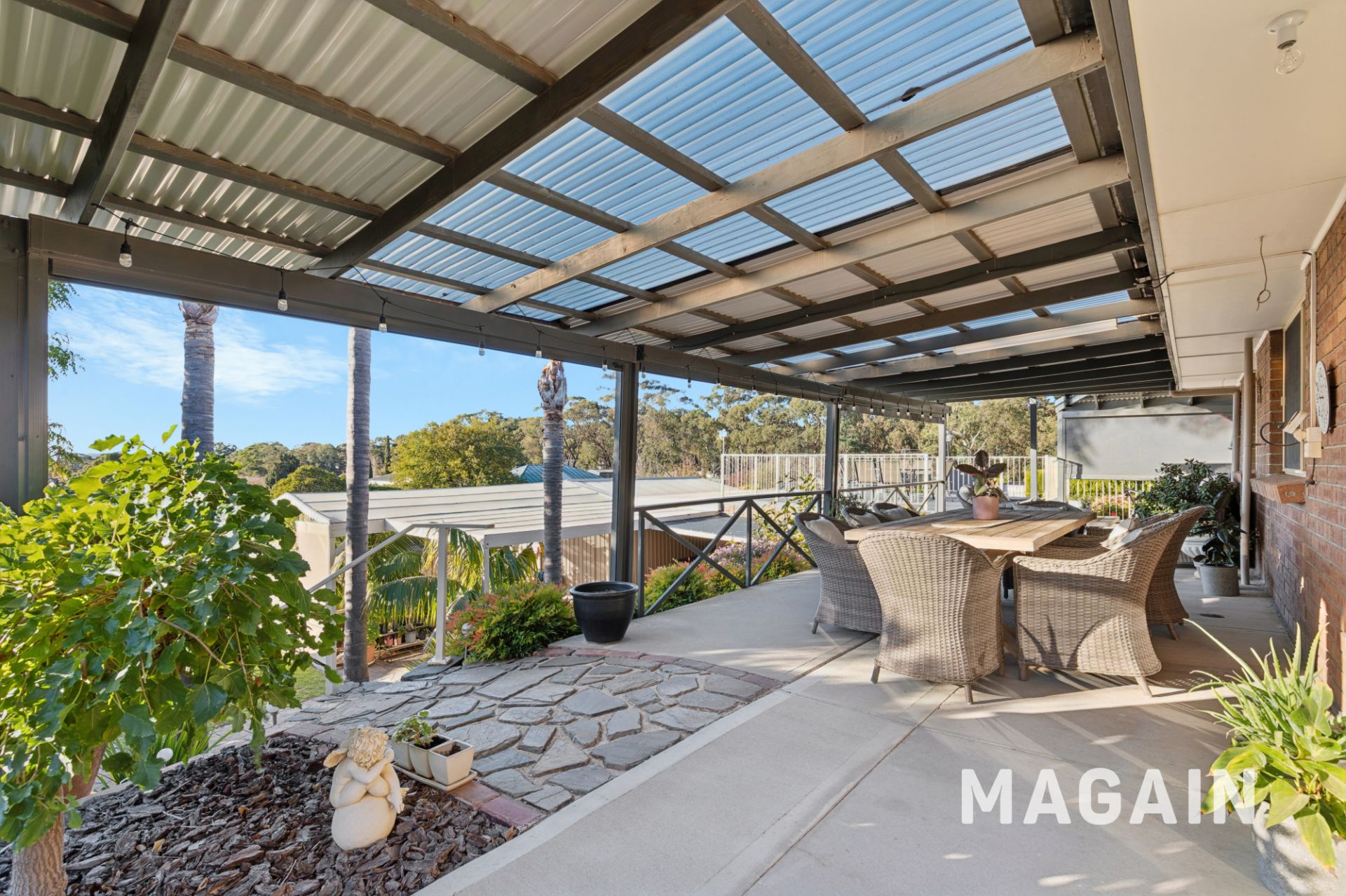 If you're not already impressed, just wait until you step outside. The front garden is beautifully landscaped with vibrant flowers, lush shrubs, and established trees, creating strong street appeal. At the rear, the upper level boasts a spacious undercover verandah, surrounded by Zip Trak blinds, that flows onto a sun-drenched patio-an ideal setting for alfresco dining or a peaceful morning coffee with scenic views that go as far as Black Road and Glenthorne Farm to the North and the ocean to the West. An outdoor staircase leads to a second covered verandah below, where a generous lawn area awaits. Surrounded by flourishing gardens and soaring palms, it's the perfect outdoor haven for children, pets, and entertainers alike.