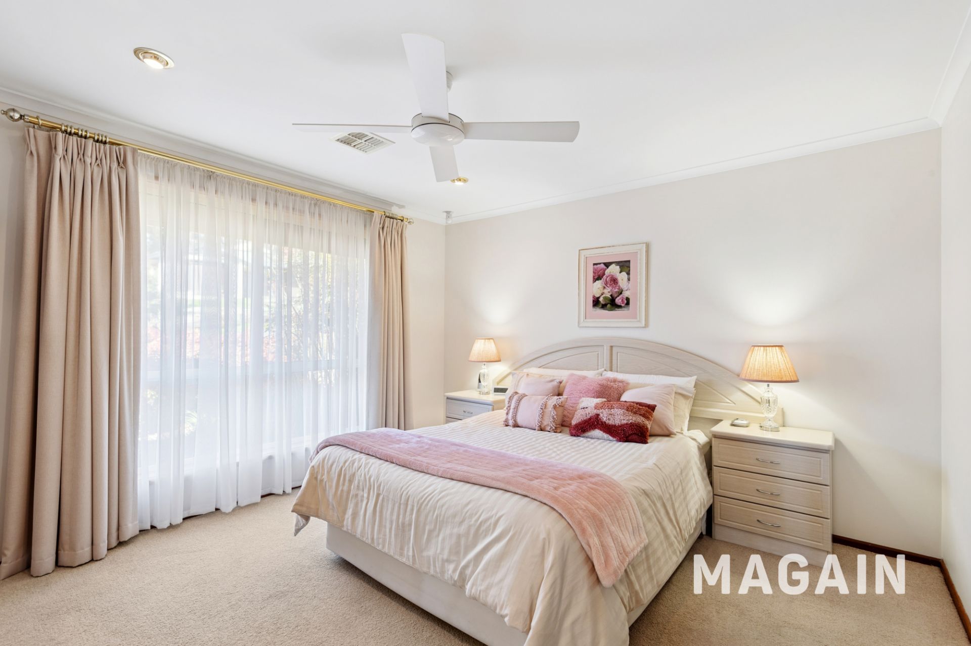 Completing the home are four generously sized bedrooms, each featuring plush carpeting, built-in storage, and ducted air conditioning vents for year-round comfort. The master suite offers a touch of luxury, boasting a spacious walk-in wardrobe and a private ensuite.