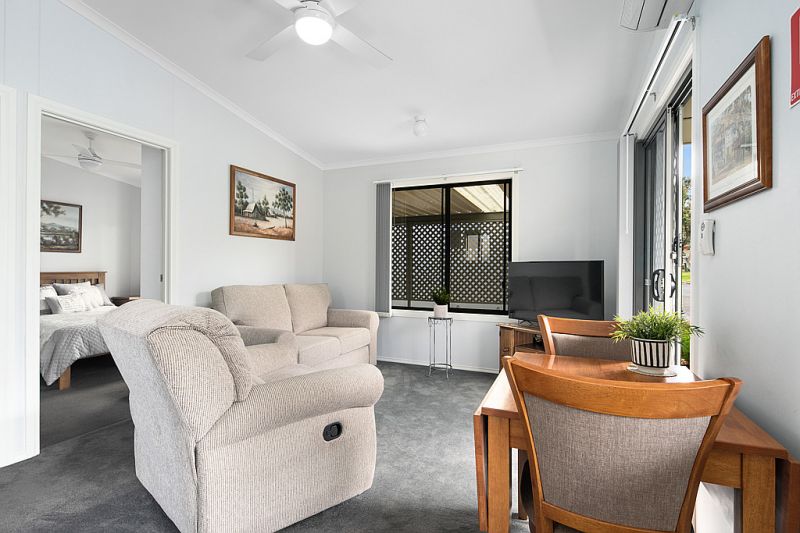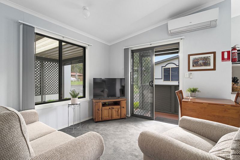 Air conditioning is a split system and there's a small balcony at the front of the unit where you can relax at the end of the day. The park backs onto Thaxted Park Golf Course and is in a lovely bushland and creek setting. Kangaroos and ponies roam within a separate fenced area, there for everyone to enjoy.