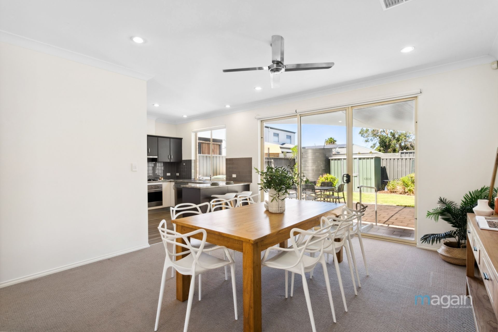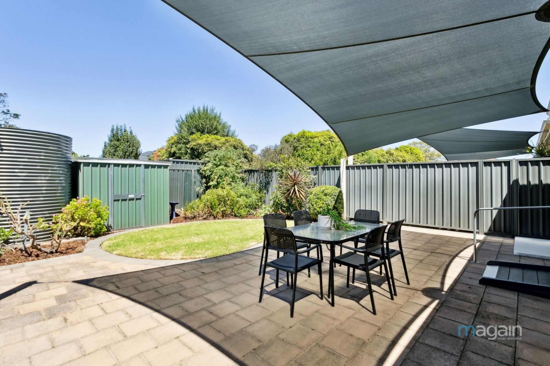 Glass sliding doors from the open-plan living area open to a picturesque rear yard, featuring a good-sized yard for entertaining. Enjoy gatherings in style, regardless of the weather, on the paved alfresco entertaining area covered by a shaded sail. The low-maintenance yard, complemented by a garden shed, is perfect for the entire family.