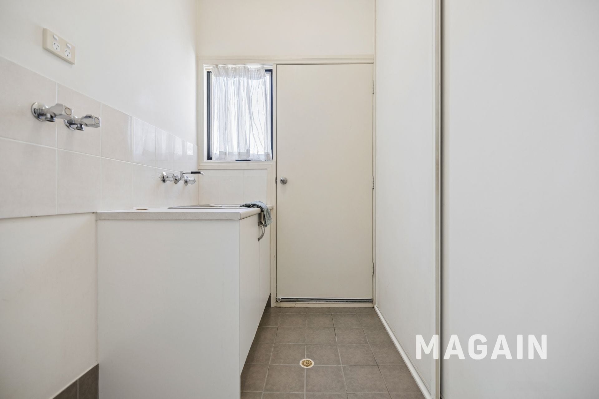 The floorplan is designed for effortless living, with all bedrooms conveniently located near the main bathroom and laundry. The bathroom is equipped with a walk-in shower, bathtub, vanity, and a separate toilet, making it ideal for a growing family. The laundry also offers direct outdoor access, adding an extra layer of convenience.