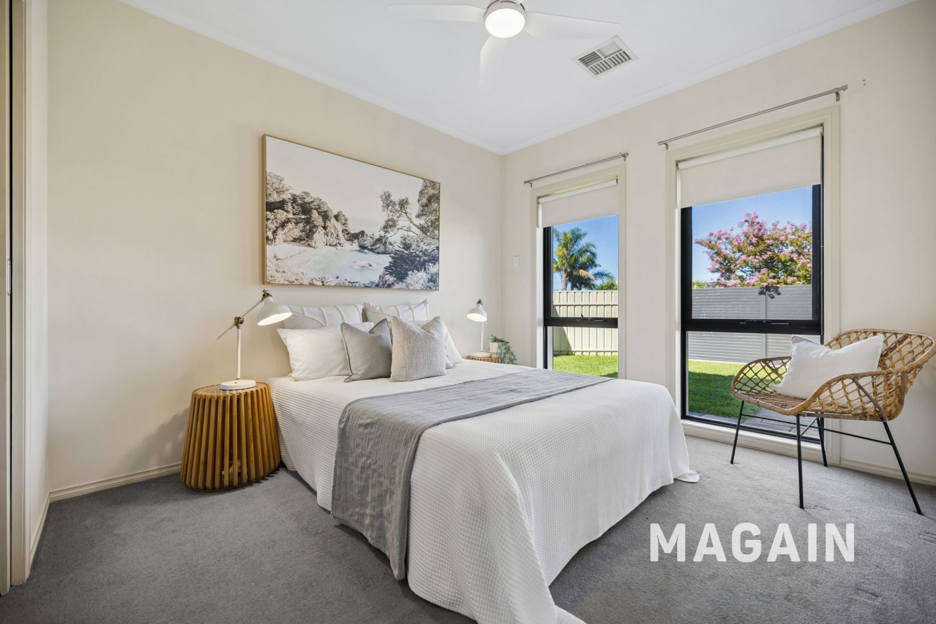 The home is finished with three spacious and well-appointed bedrooms, each bathed in natural light from large picture windows with roller shutters and featuring soft, plush carpeting. The master suite serves as a luxurious retreat, complete with a walk-in wardrobe and a private ensuite. Bedrooms 2 and 3 are thoughtfully designed with built-in wardrobes, providing ample storage space for all your needs.