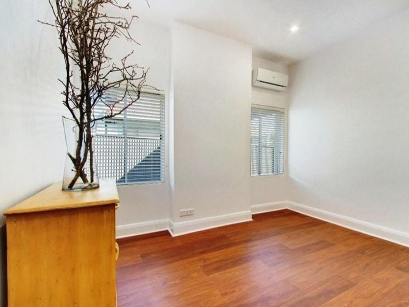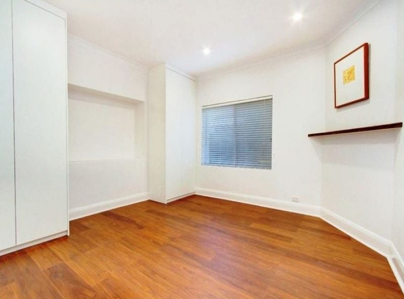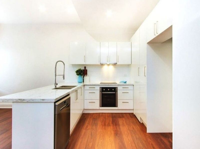 Both bedrooms are well sized, with the main bedroom offering built-in storage. A modern central bathroom is complemented by integrated laundry facilities for added convenience.