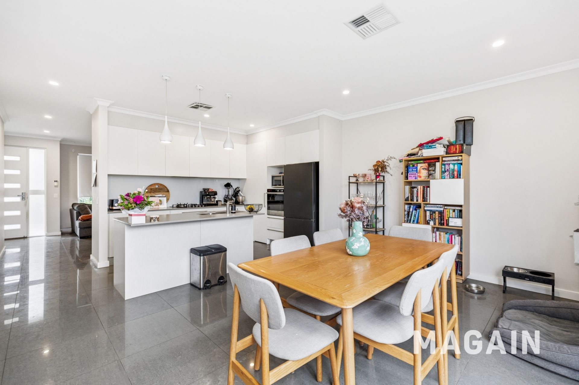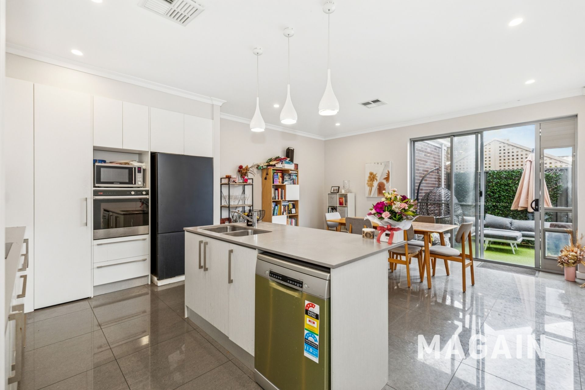 - Light-filled open kitchen/dining area.