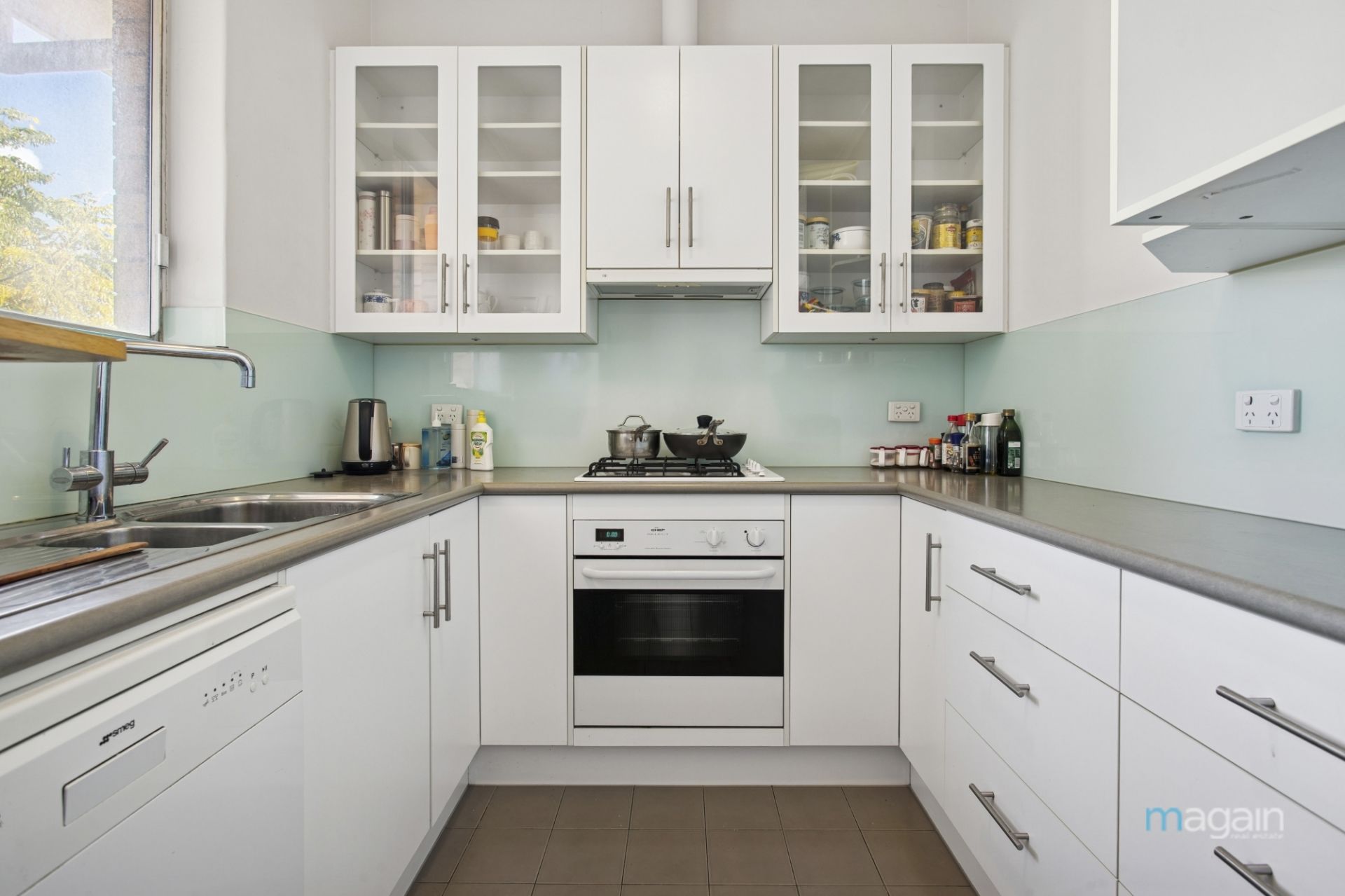 The kitchen, overlooking lush, mature gardens, has been thoughtfully maintained with its modern neutral tones and a high-quality Smeg dishwasher. The bathroom remains a standout feature, fully updated with no expense spared, boasting an oversized shower and stylish vanity.