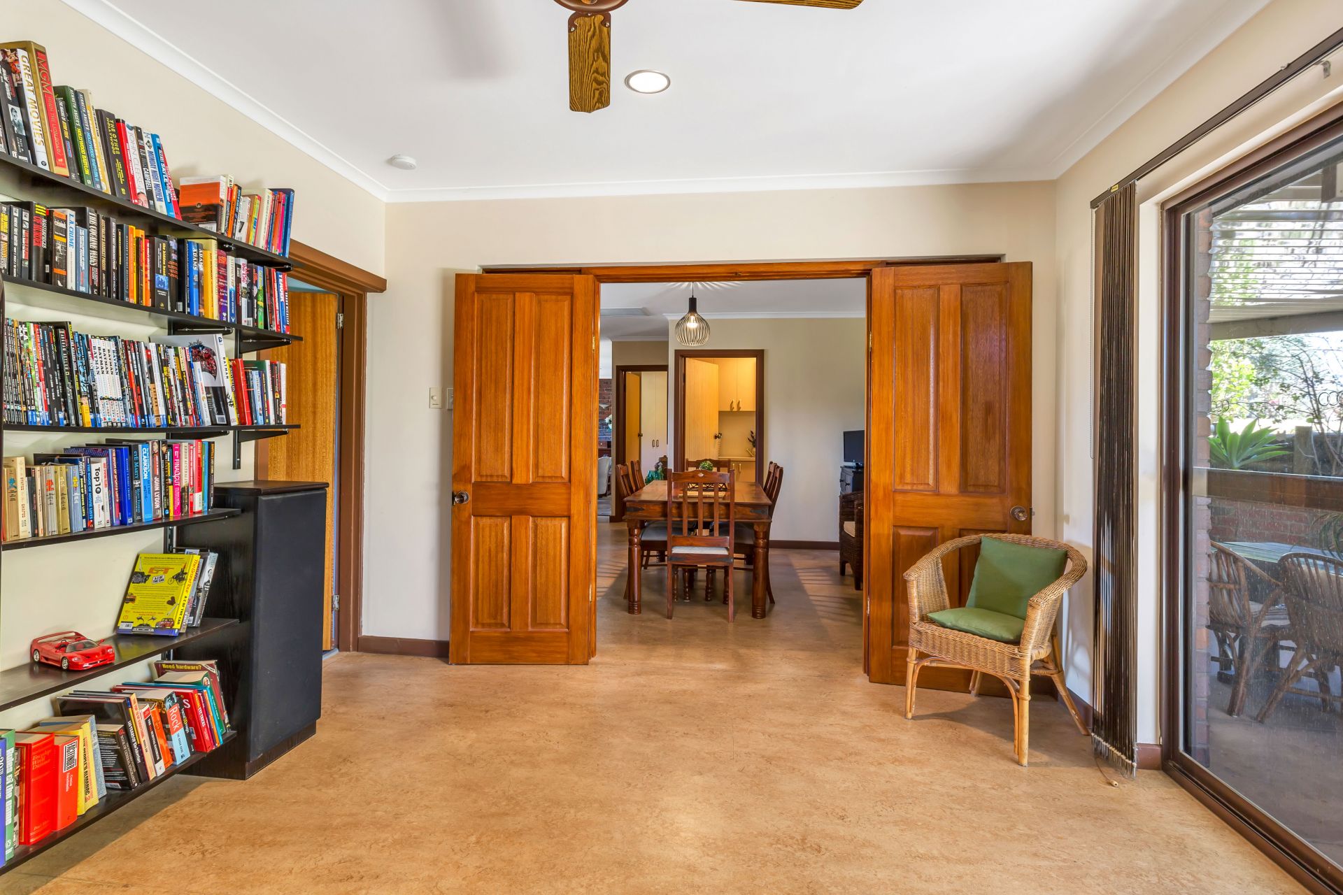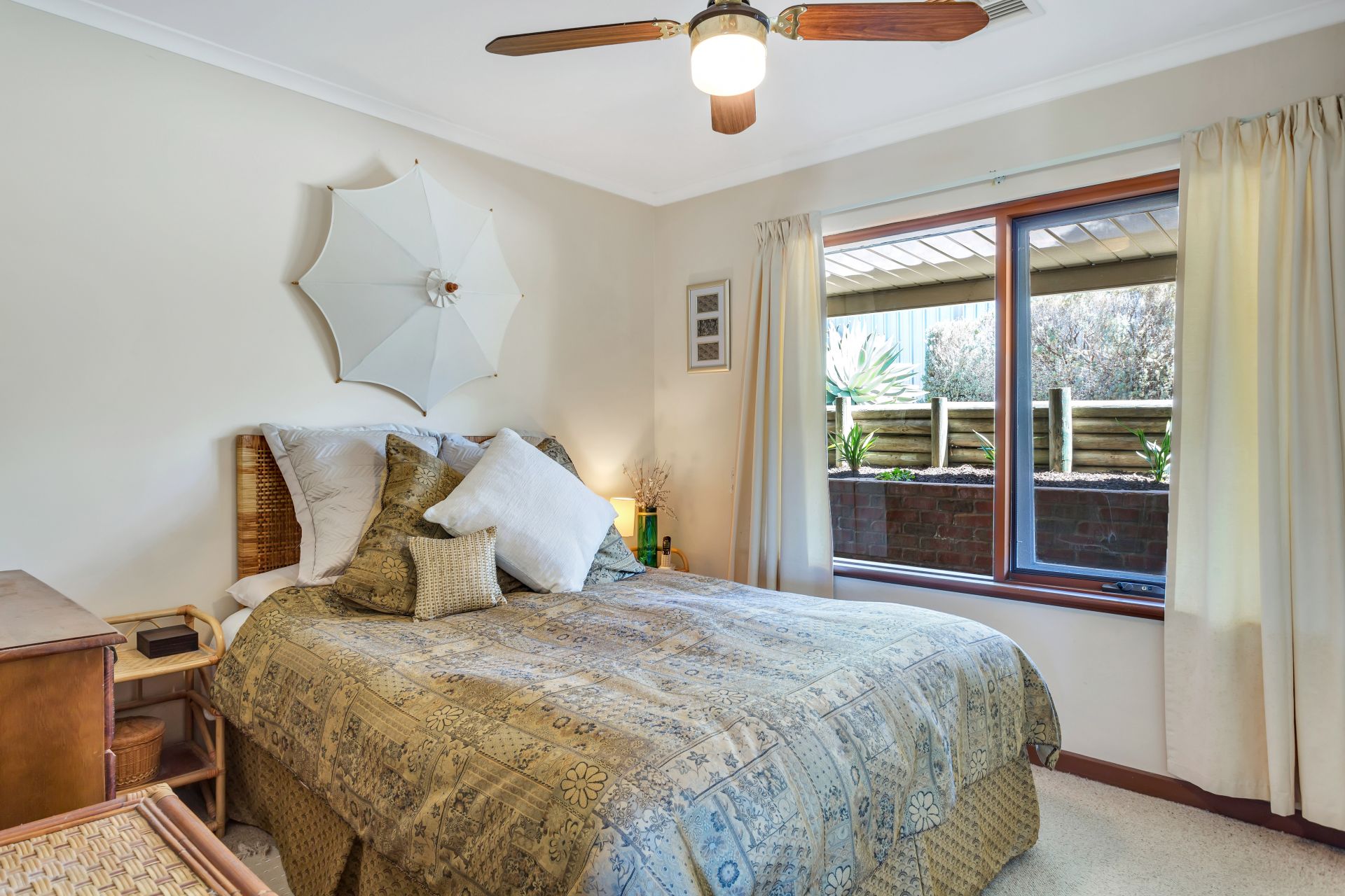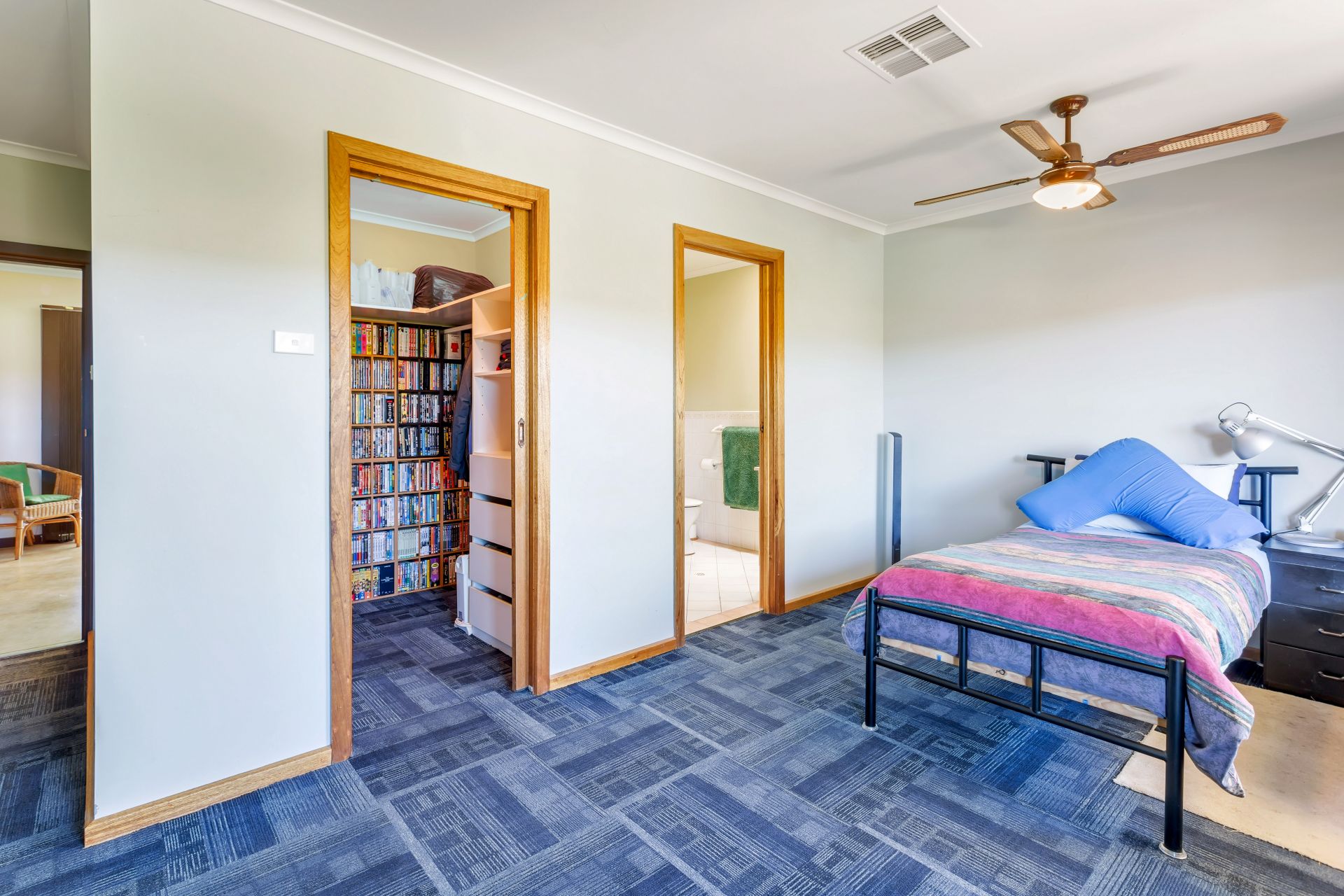 Bedroom 3 would make an ideal guest bedroom. Just off the living area and has a large built in robe with easy access to the main bathroom. All bedrooms have ceiling fans as well as the family rooms and there is ducted reverse cycle air-conditioning throughout.