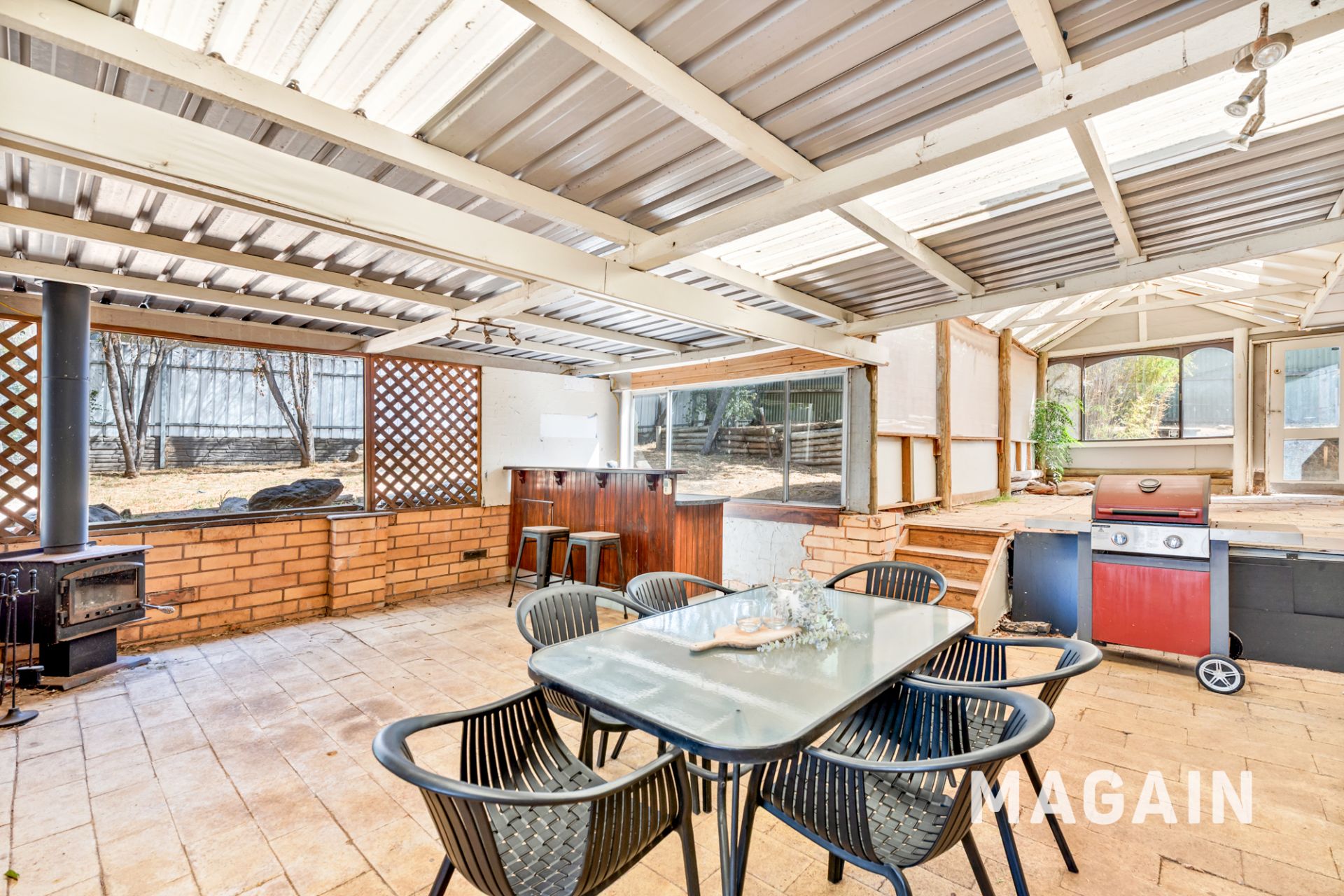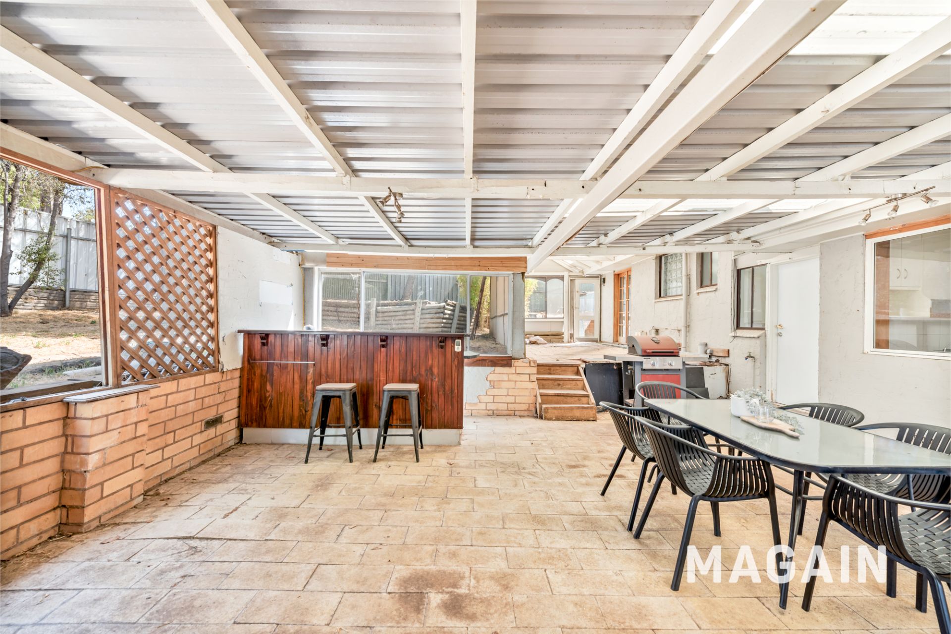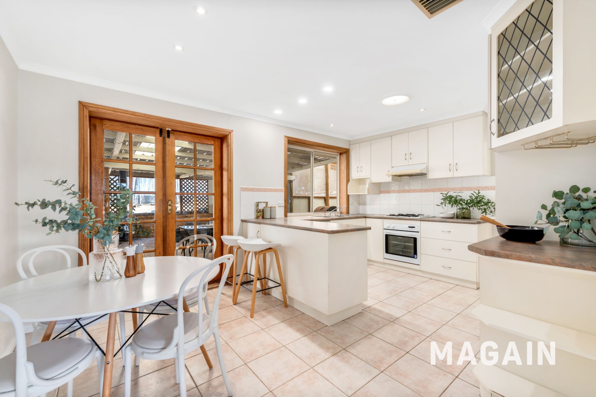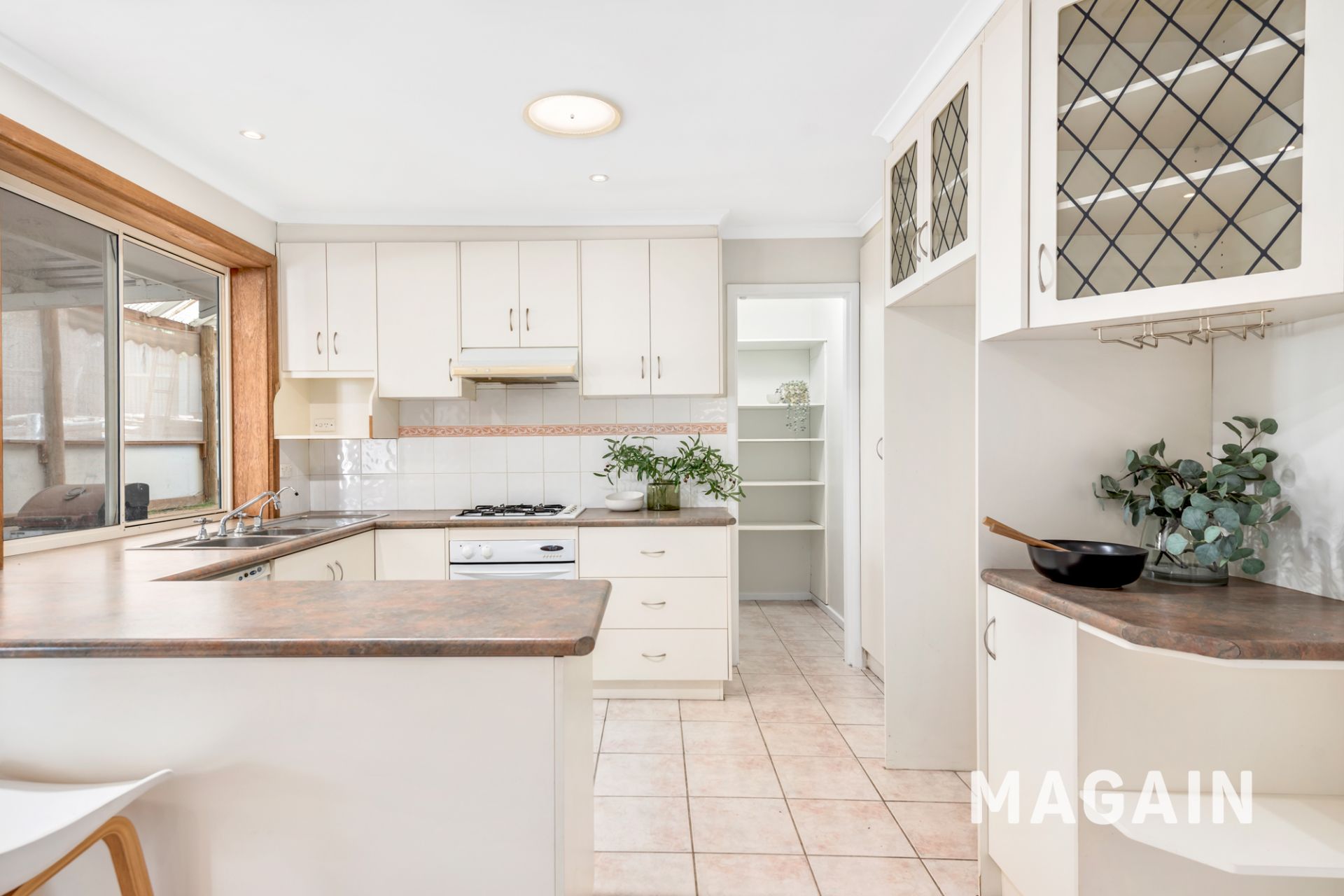The kitchen features a gas cooktop, generous bench space and ample storage, and connects easily with the dining area while also offering access to the outdoor entertaining zone. A separate laundry is conveniently located nearby, along with additional internal storage.