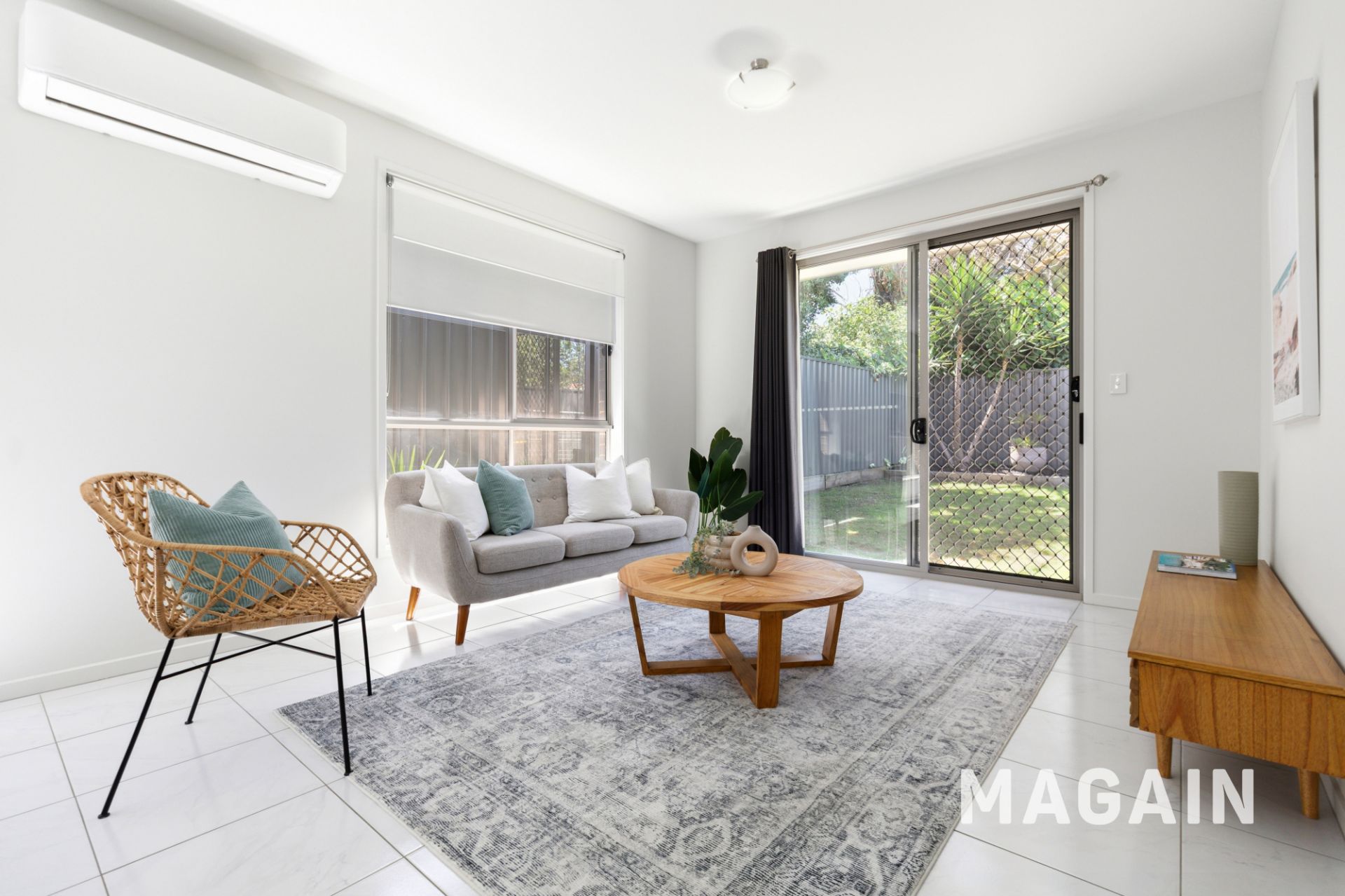 Glass sliding doors open out to a generous rear yard complete with lush lawn and established tropical-style landscaping, offering plenty of space for kids and pets to play, or to simply relax outdoors in your own private oasis.