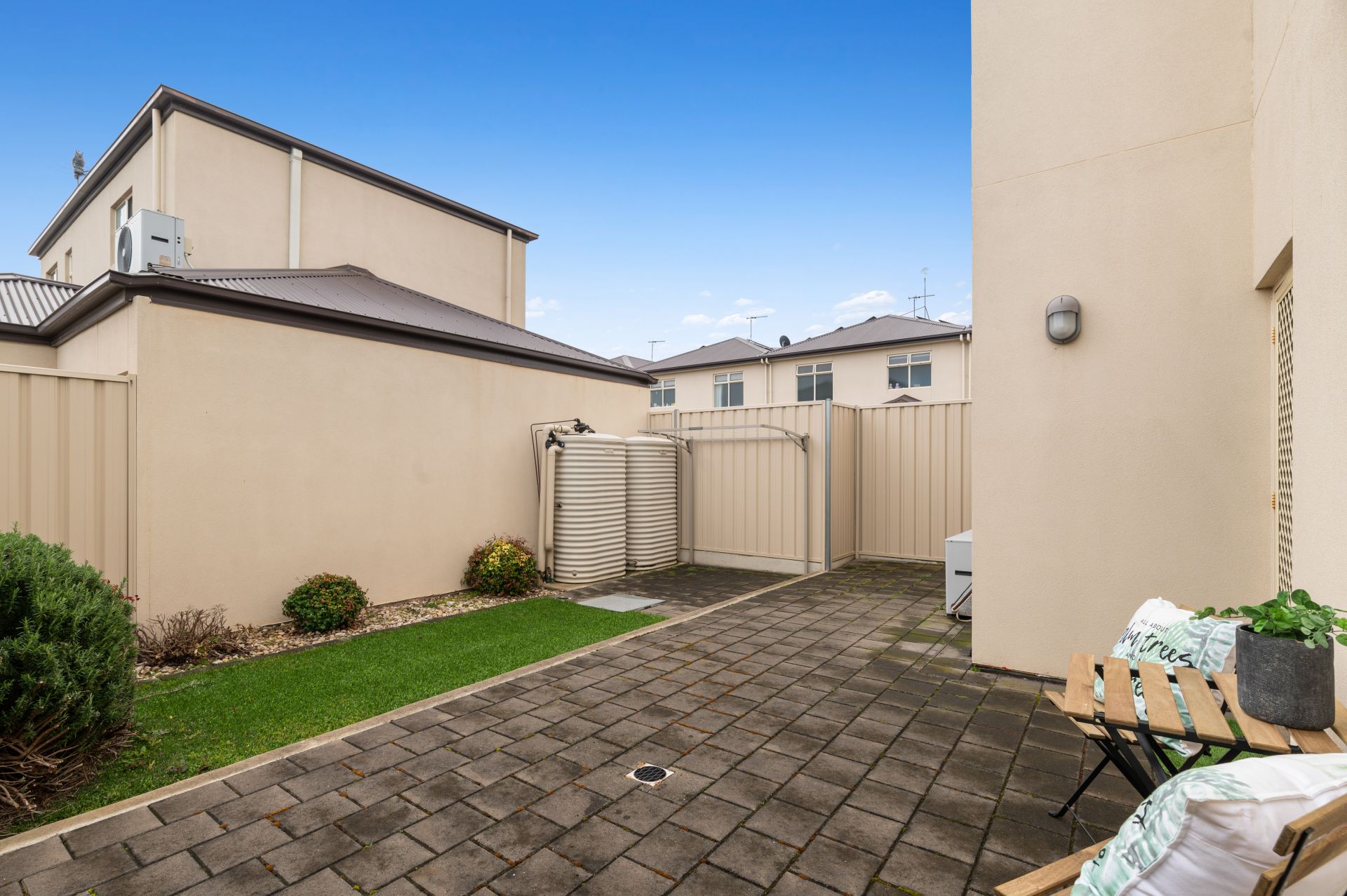 Heading outside you are treated with a low maintenance courtyard home - perfect for the lock up and leave lifestyle. The paved area is a great place to set up the outdoor table and enjoy the sunshine, with the low maintenance lawn ideal for the pets. The lock up garage allows for secure parking, to lock up and leave whenever you want.