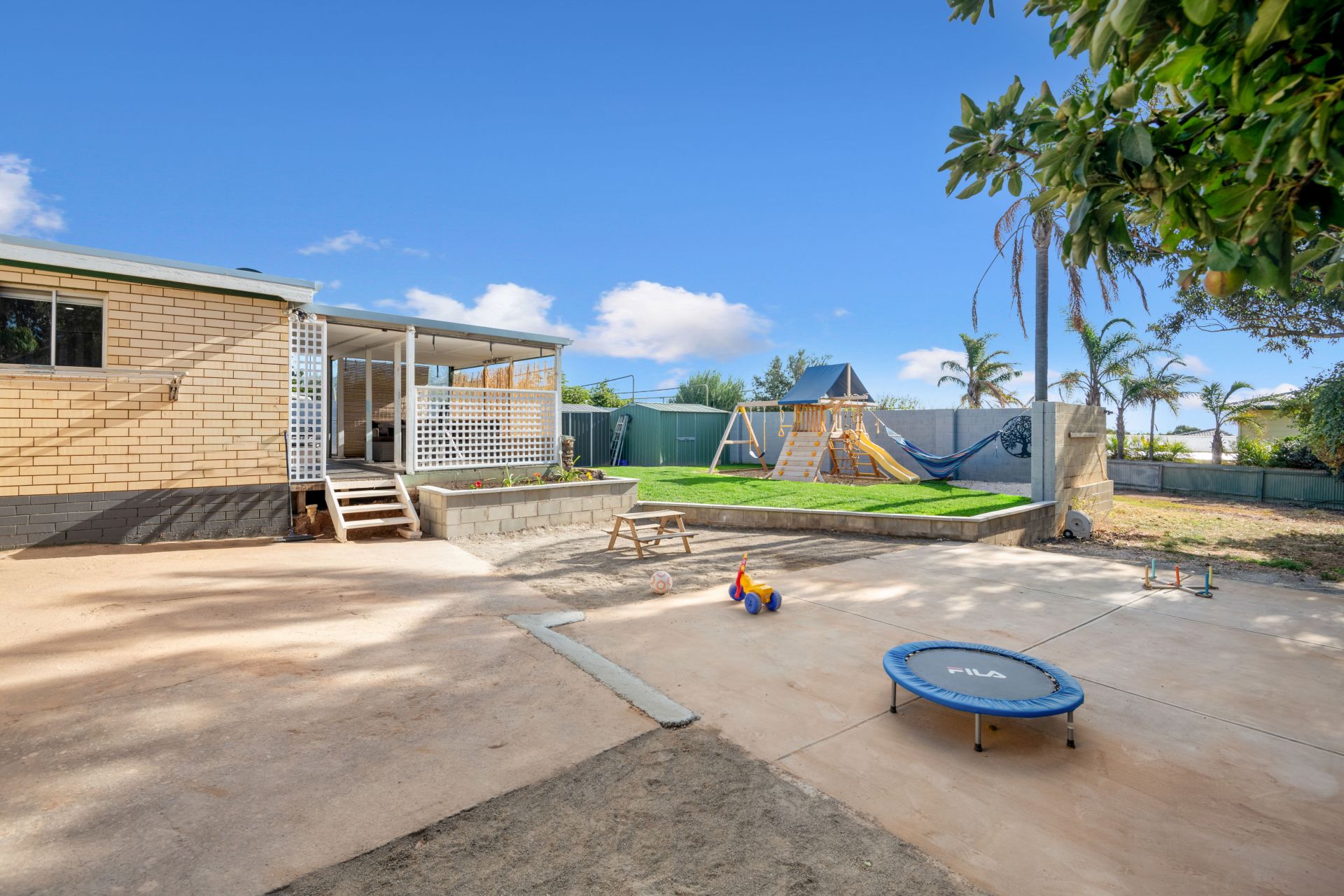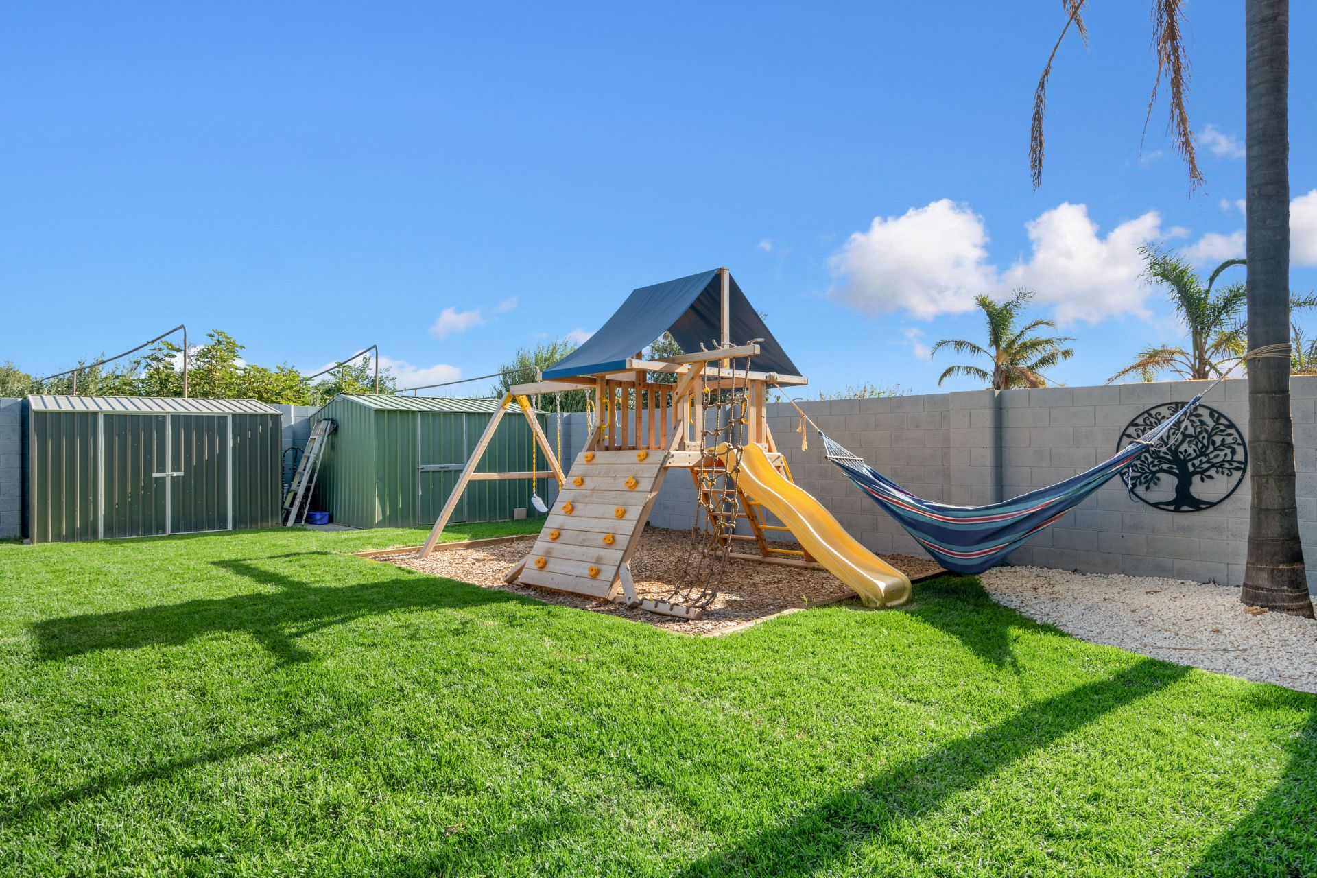 While there is much to love about the home, there is over 1000 reasons to love outside. Sitting on a huge block of 1,061 sqm there is just so much space to move. The entertaining area flows smoothly from the lounge room and is the perfect place to entertain your family and friends. Watch the kids run around on the meticulously maintained lawn and play on the built in playground while cooking the bbq and enjoying a glass of wine. And with an extra 300sqm of land to the rear of the property having drive through access, there is the perfect place to build your dream shed.