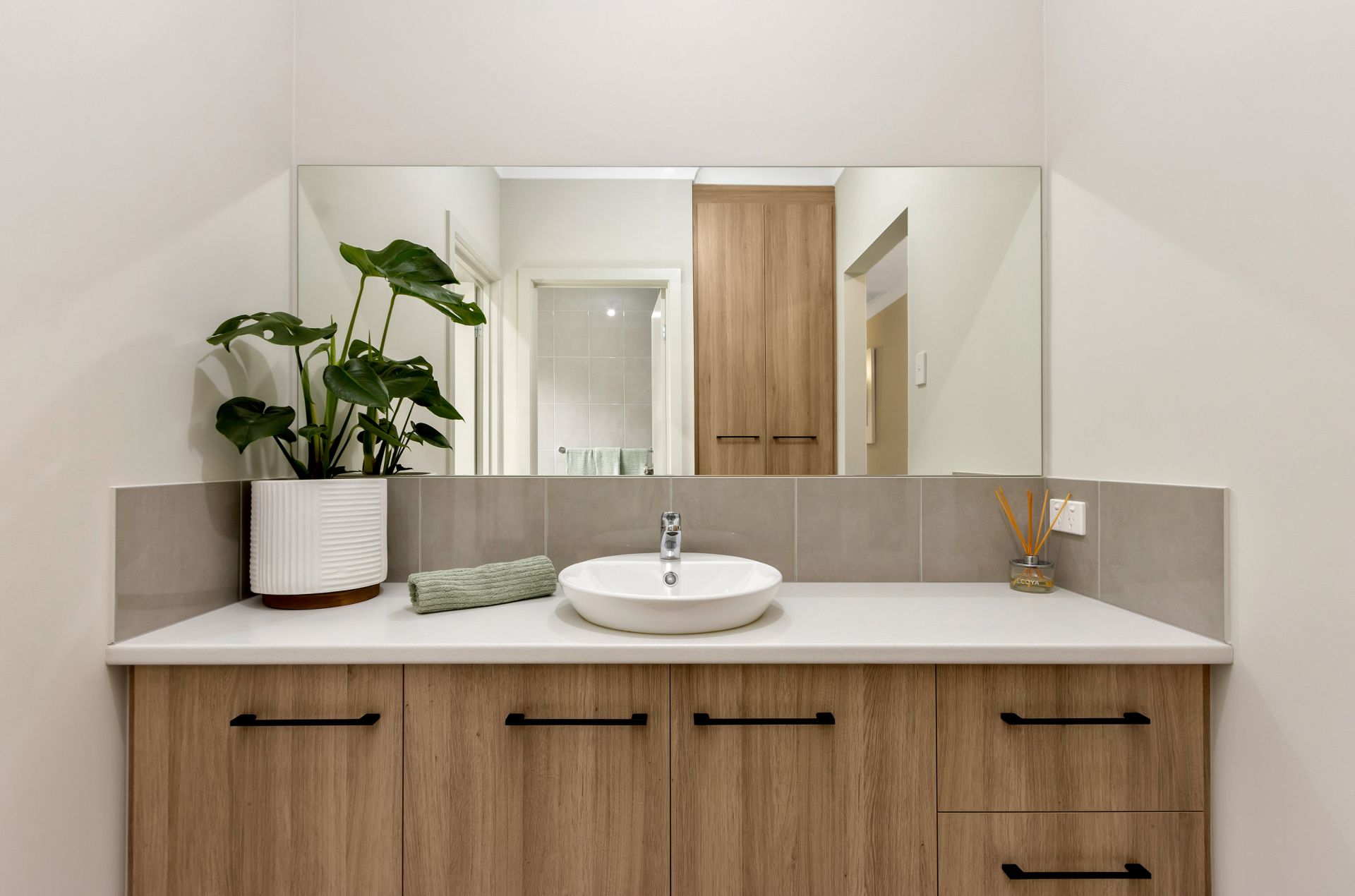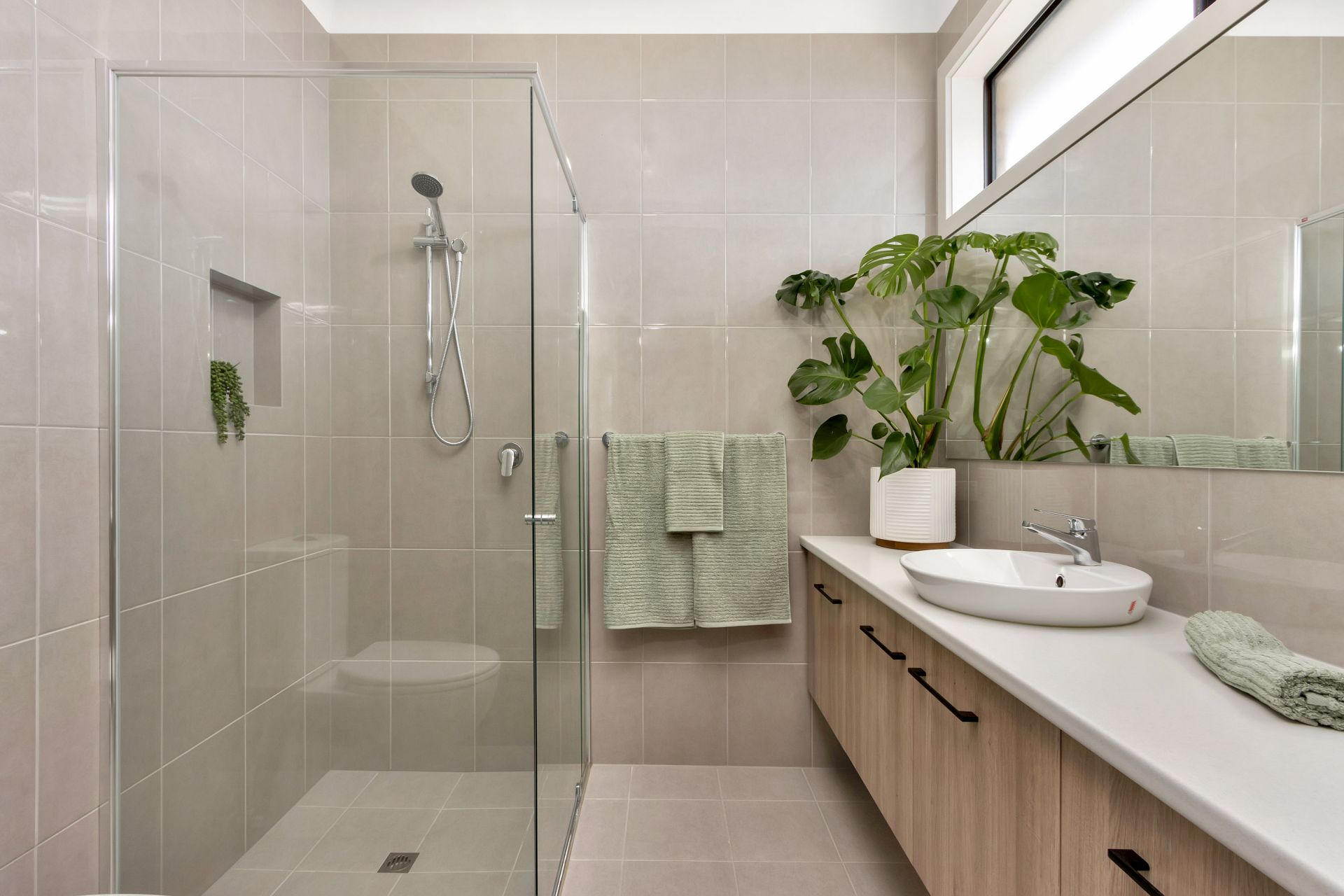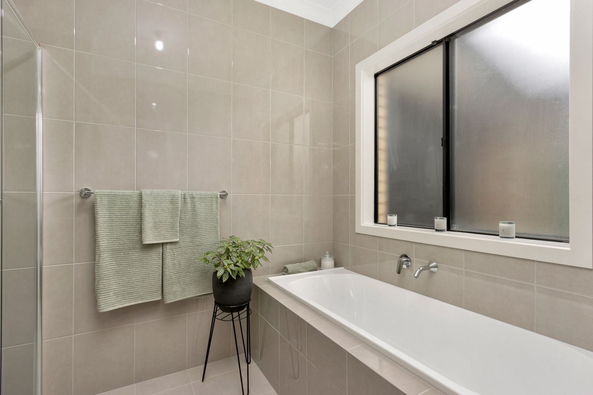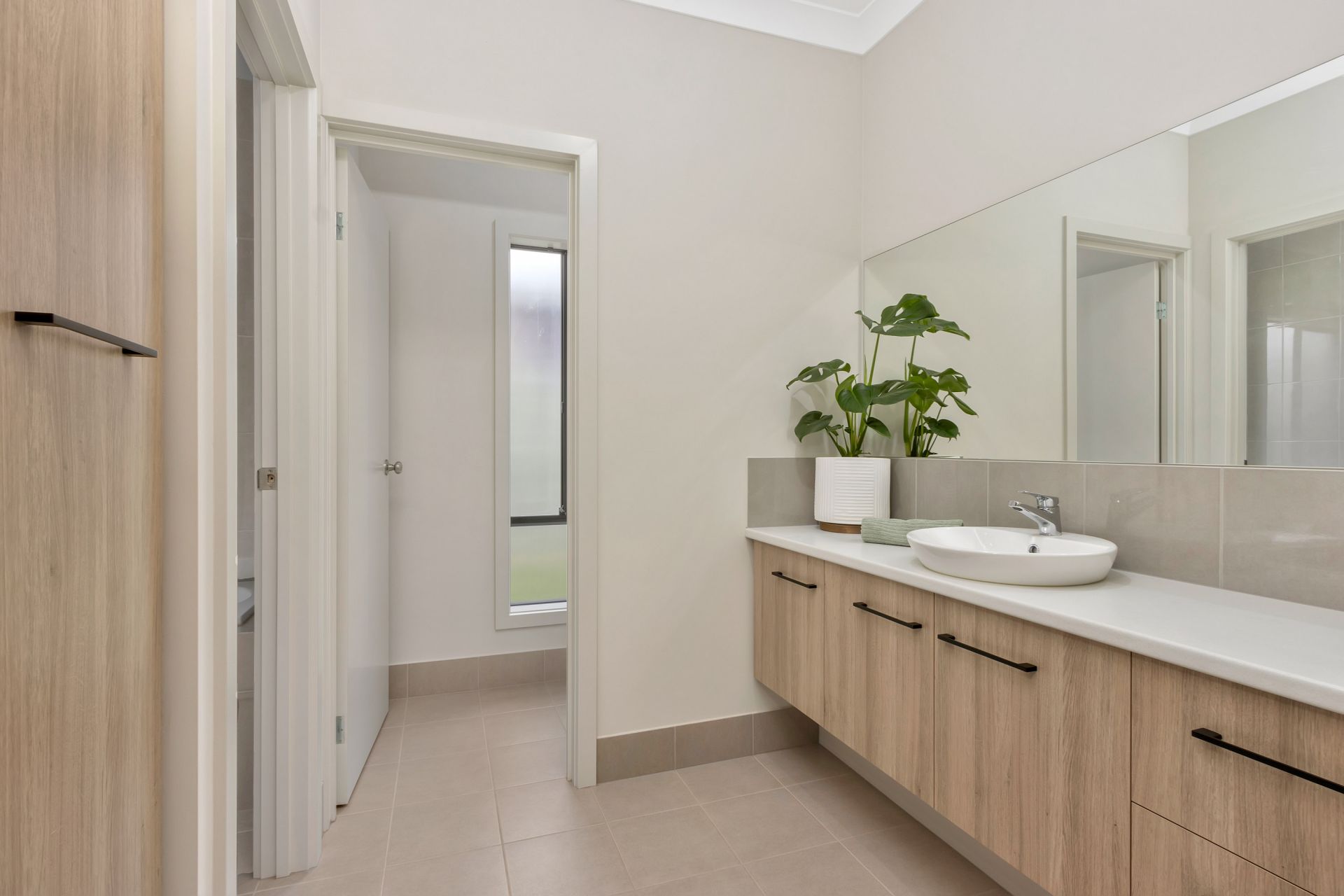 Designed with quality at every turn, the home features three generous bedrooms, each fitted with walk-in robes. The luxurious master suite impresses with a beautifully appointed ensuite showcasing floor-to-ceiling tiles, complemented by the same high-end finish in the main bathroom. Soaring 2.7m ceilings enhance the sense of space throughout.