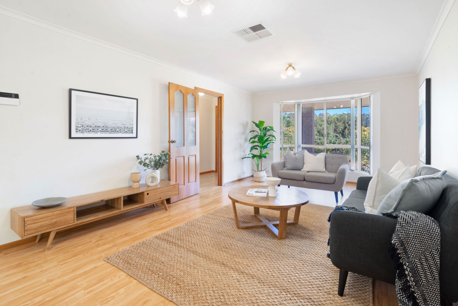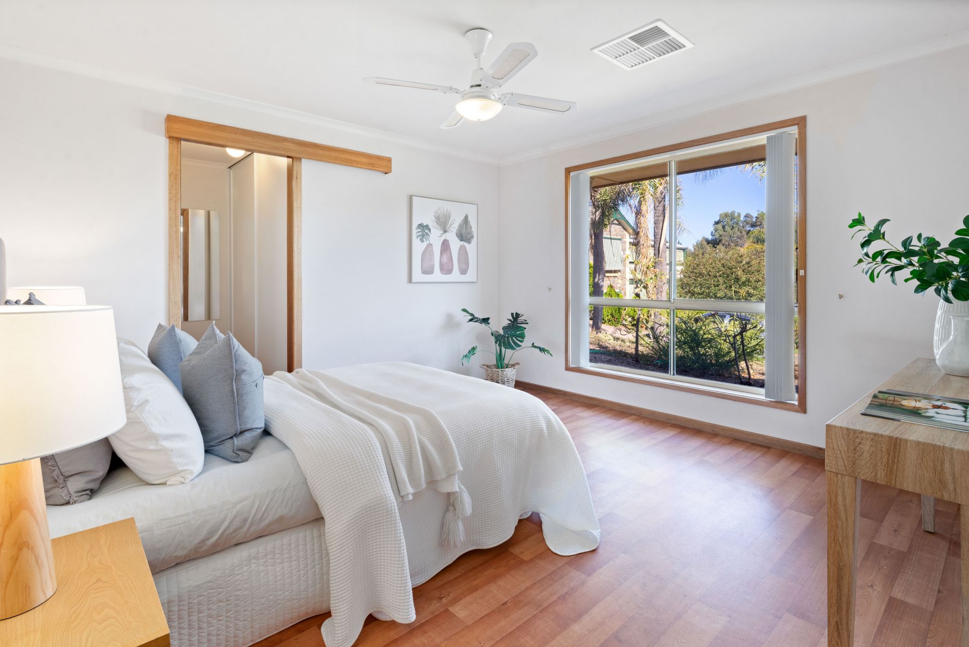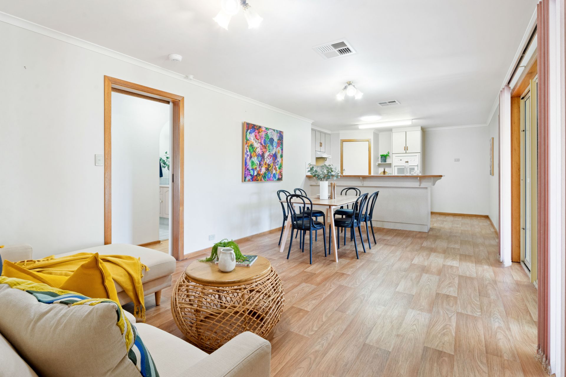 Upon entering the home, you are greeted into a lovely wide entry way, from here you can turn right into the master bedroom or head to the left and discover the spacious formal living area. Floating timber floors invite you into this large living area and the beautiful bay window captures the charming views over the front garden and beyond. Venture a little further and the large open plan kitchen, meals & second living area will be revealed - the hub of the home, boasting easy care vinyl flooring and a glass sliding door provides a seamless transition to the paved entertaining area. The kitchen features a generous walk-in pantry, ample bench and cupboard space, electric oven and electric cooktop while still cleverly uniting the family with the perfect space to chat or chill out whilst meals are being prepared. There are three good-size bedrooms, the master offers a spacious ensuite bathroom, a walk-in robe and a ceiling fan plus a peaceful outlook over the front garden. Bedroom two has a built-in robe and bedroom three has a ceiling fan and freestanding cupboards, both these bedrooms are separated by the three-way bathroom consisting of a bathtub, shower and toilet, ready for the hustle and bustle of busy family life. Valuable added extras include ducted reverse cycle air conditioning to keep you comfortable all year round, solar panels to help reduce those rising electricity costs and a large laundry with a big built-in linen/storage cupboard and a sliding door to the outside.