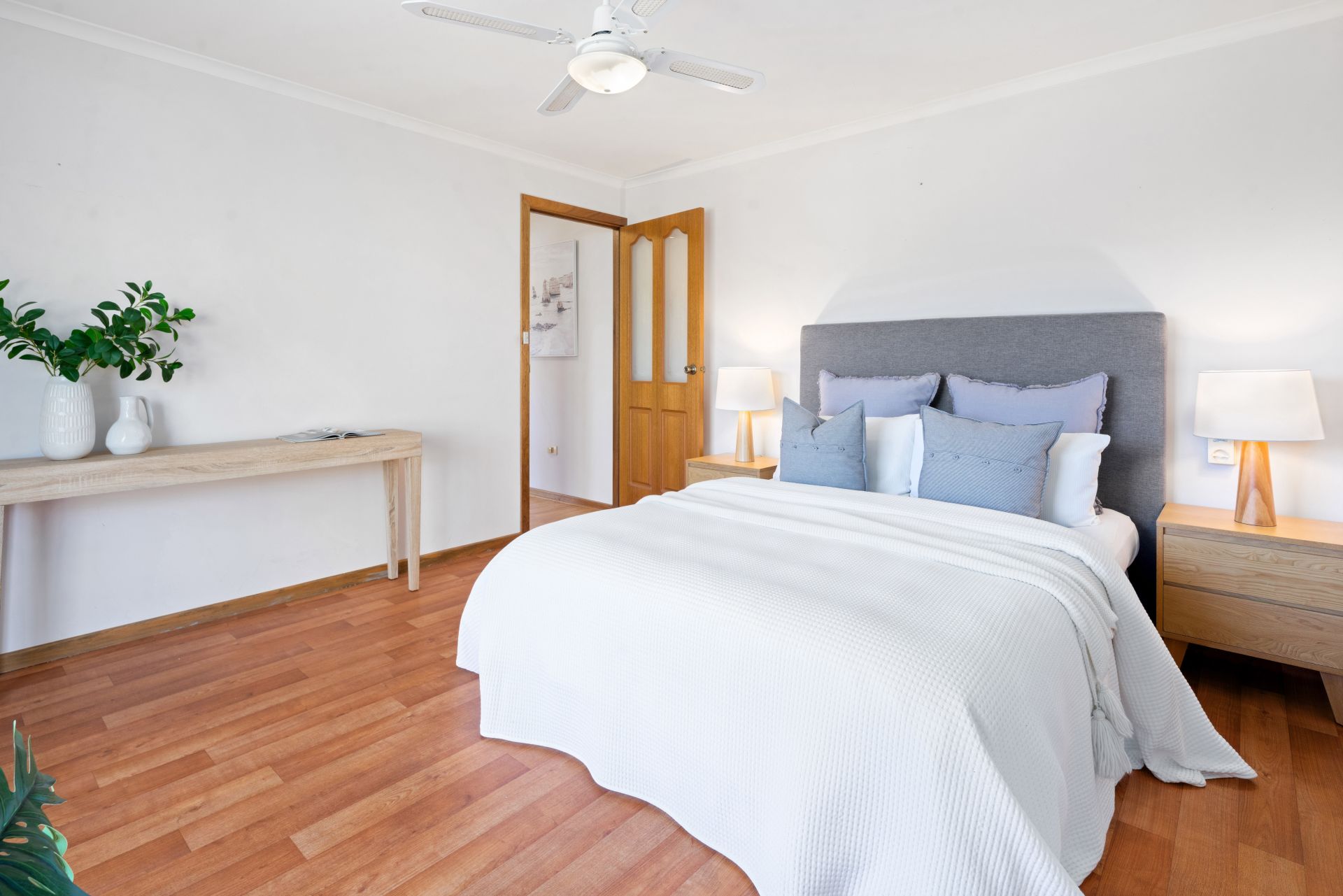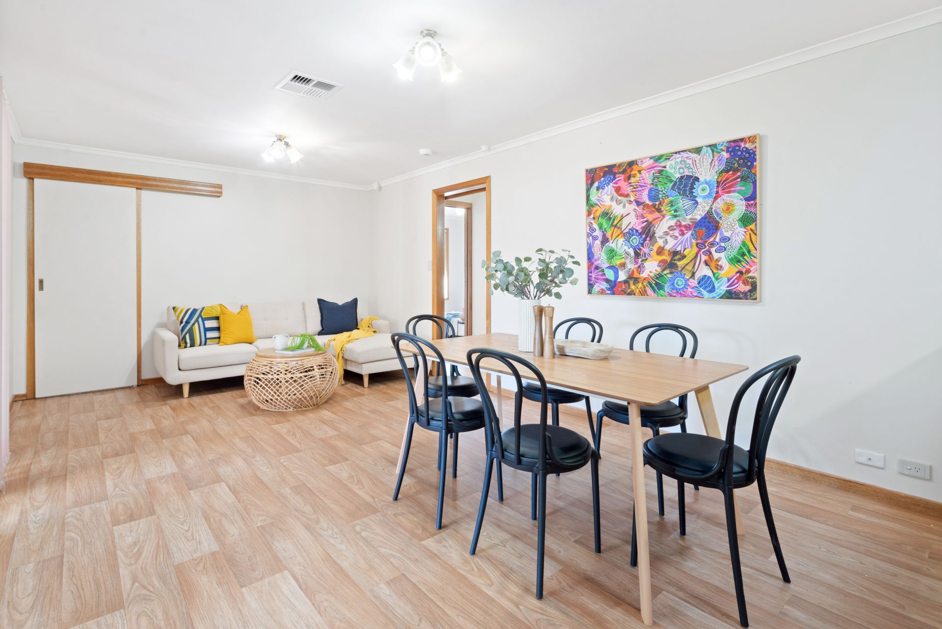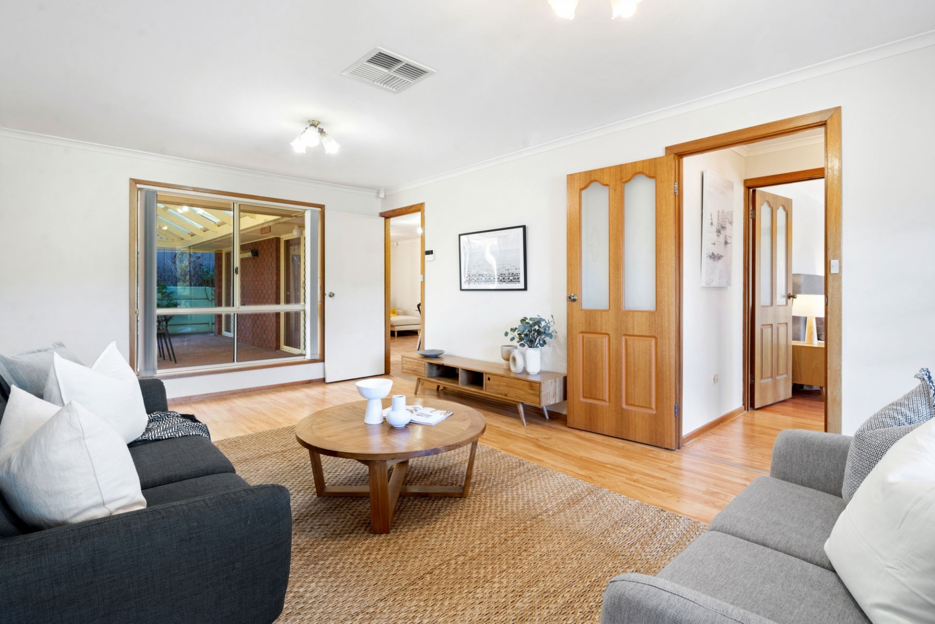 Upon entering the home, you are greeted into a lovely wide entry way, from here you can turn right into the master bedroom or head to the left and discover the spacious formal living area. Floating timber floors invite you into this large living area and the beautiful bay window captures the charming views over the front garden and beyond. Venture a little further and the large open plan kitchen, meals & second living area will be revealed - the hub of the home, boasting easy care vinyl flooring and a glass sliding door provides a seamless transition to the paved entertaining area. The kitchen features a generous walk-in pantry, ample bench and cupboard space, electric oven and electric cooktop while still cleverly uniting the family with the perfect space to chat or chill out whilst meals are being prepared. There are three good-size bedrooms, the master offers a spacious ensuite bathroom, a walk-in robe and a ceiling fan plus a peaceful outlook over the front garden. Bedroom two has a built-in robe and bedroom three has a ceiling fan and freestanding cupboards, both these bedrooms are separated by the three-way bathroom consisting of a bathtub, shower and toilet, ready for the hustle and bustle of busy family life. Valuable added extras include ducted reverse cycle air conditioning to keep you comfortable all year round, solar panels to help reduce those rising electricity costs and a large laundry with a big built-in linen/storage cupboard and a sliding door to the outside.