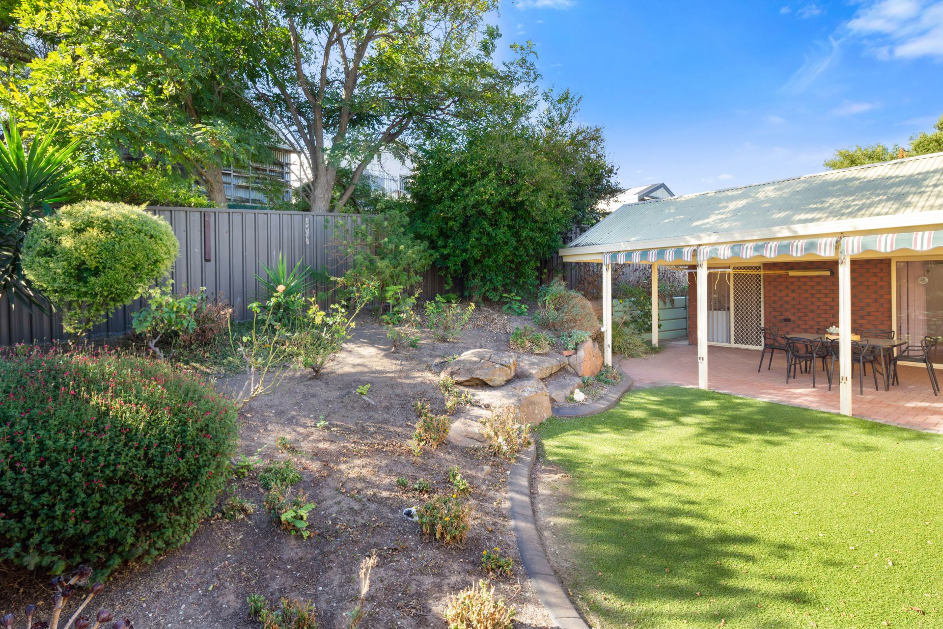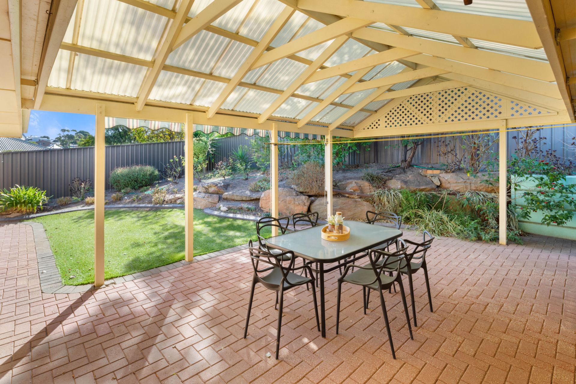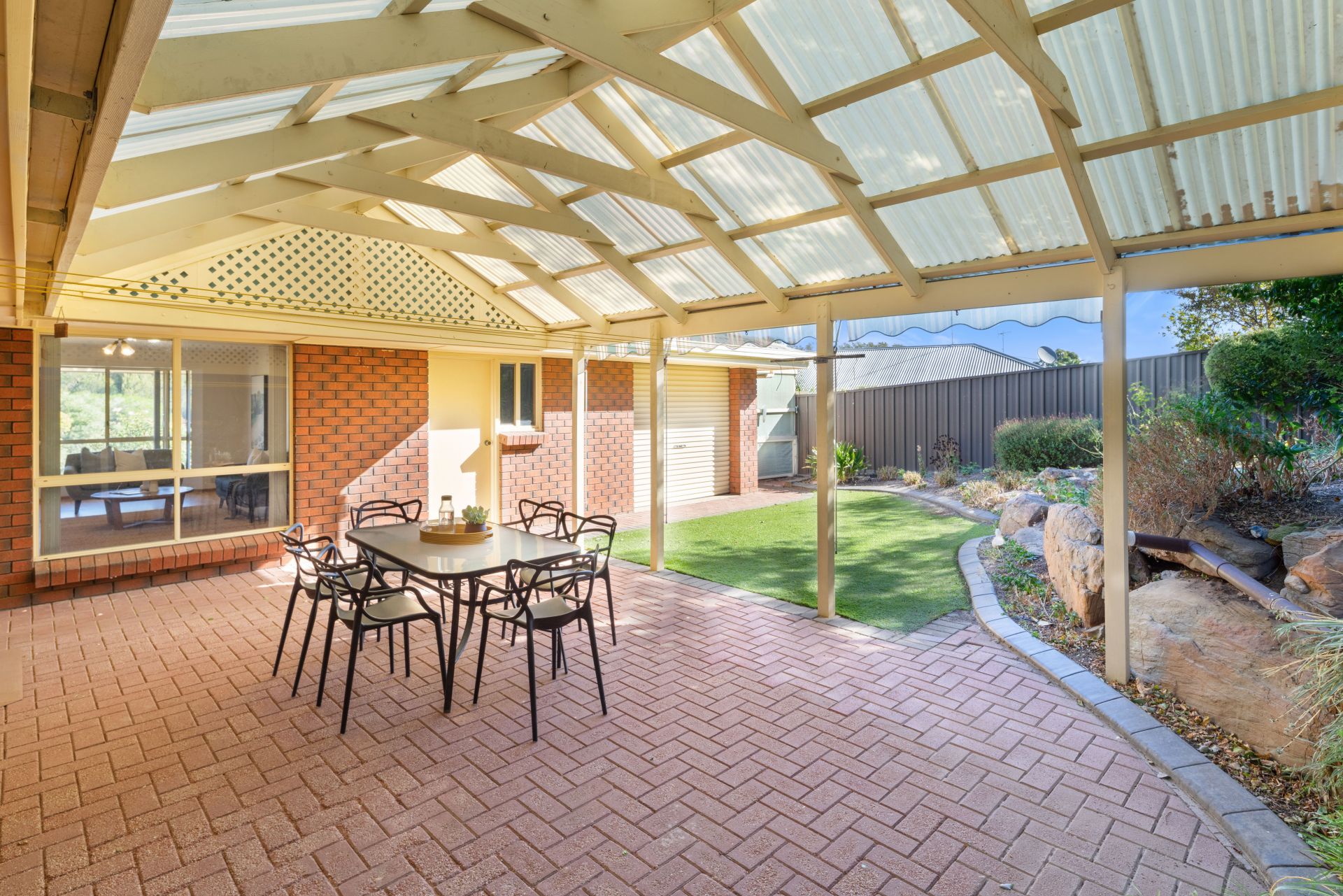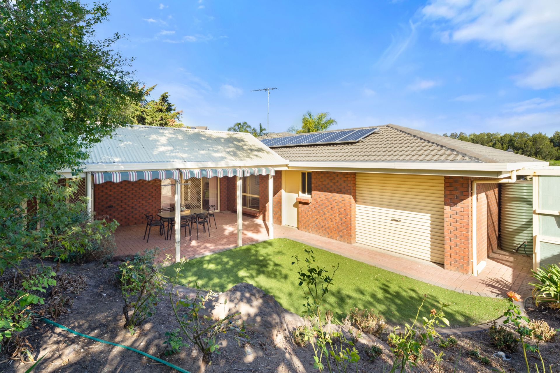 Situated on a good-sized allotment of around 600m² with beautiful established gardens, the front has been tiered with moss rocks and planted with colourful roses and other easy-care plants. The back yard has a paved entertaining area with a pitched roof pergola and the pull-down blinds make it a prime spot to unwind and enjoy the privacy. The kids will love running around on the artificial grass, climbing over the moss rock garden beds and exploring the fully fenced and private backyard. A single driveway leads you into the oversized double garage, with dual rollers doors on the front (one automatic) and internal access to the home. Another roller door (manual) offers drive through access to the back yard as does the personal access door. A handy garden shed provides that extra storage, while a greenhouse and several rainwater tanks complete this wonderful home.