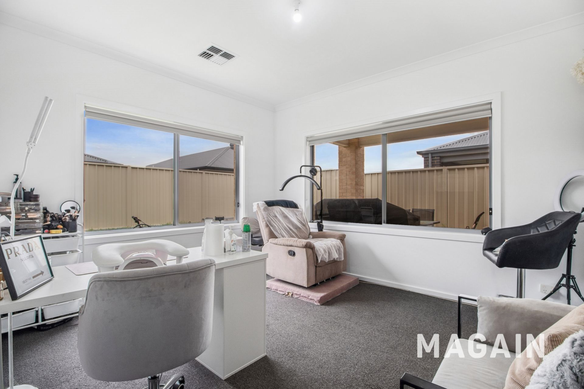 The master suite, privately positioned at the front of the home, offers a peaceful haven with a walk-in robe and elegant ensuite. The rear wing features three generous bedrooms, all with built-in robes, a study/home office, stylish main bathroom, and separate laundry - thoughtfully designed for family comfort and privacy.
