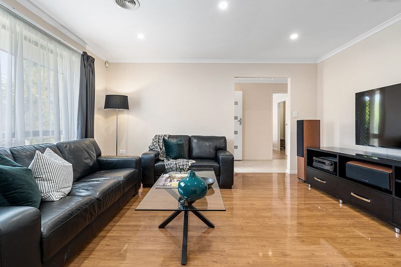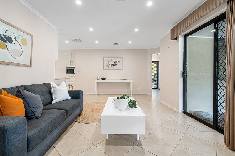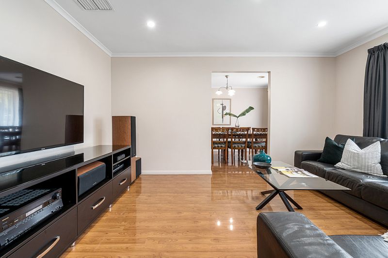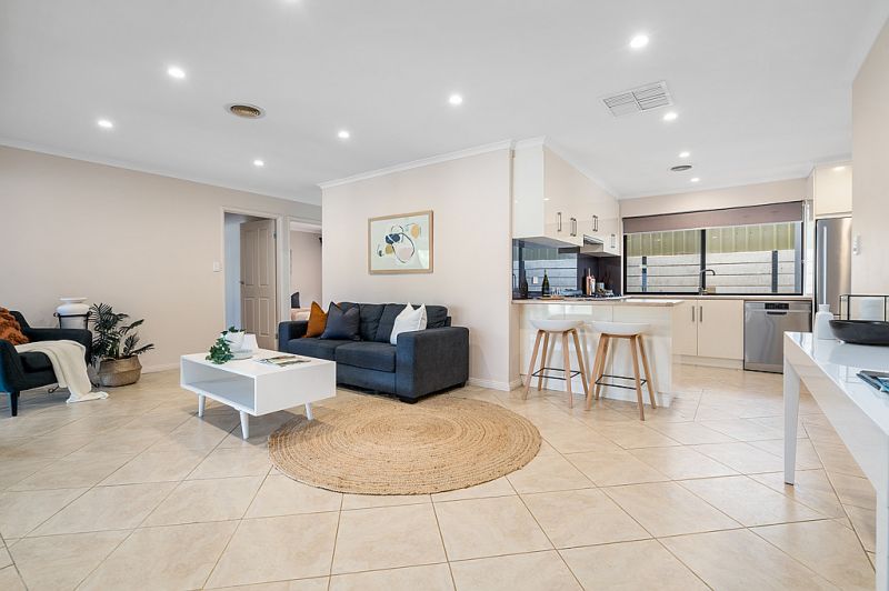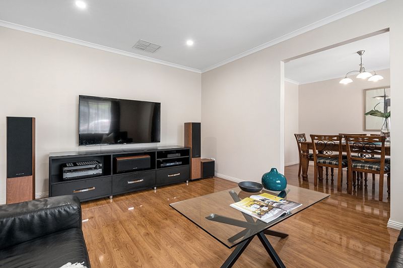 As you enter the Mount Hurtle estate you will appreciate the house proud nature of all the homes here and heading onto Mustang Crescent is no different. Approaching the home you will notice the beautiful gardens out the front, but even more impressive is the sheer amount of off street parking available with the triple garage and long driveway. Entering the home you are greeted with the master bedroom at the front, with beautiful north facing natural light flowing through. The master bedroom is a great size and also has a large walk in wardrobe and recently renovated ensuite. The lounge room at the front of the home is a great place to unwind after a long day at work and flows smoothly into the dining room.