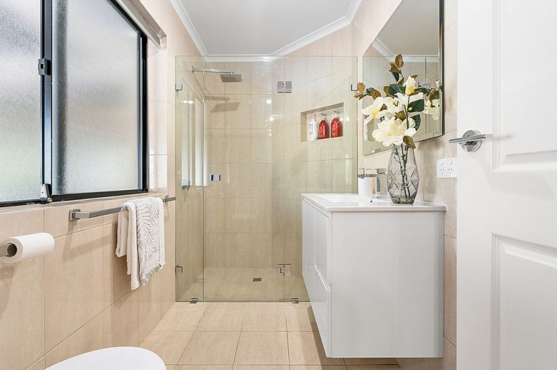 At the heart of the home is the open plan living area. The kitchen has been updated and has loads of cupboard and bench space and has all the essential appliances including gas cooktop and dishwasher. The kitchen overlooks the second living area, making watching the kids while working in the kitchen a breeze. There are four remaining bedrooms to the rear of the home, all of great size and with bedrooms 3 & 4 having built in wardrobes. The three way bathroom has been beautifully updated with floor to ceiling tiles and stone tops vanity and the laundry at the rear of the home is an absolute delight with sensational storage and a huge space to work in. For year round comfort, both ducted evaporative cooling and gas heating have been installed throughout the home. To help with the energy bills, solar panels have also been installed.
