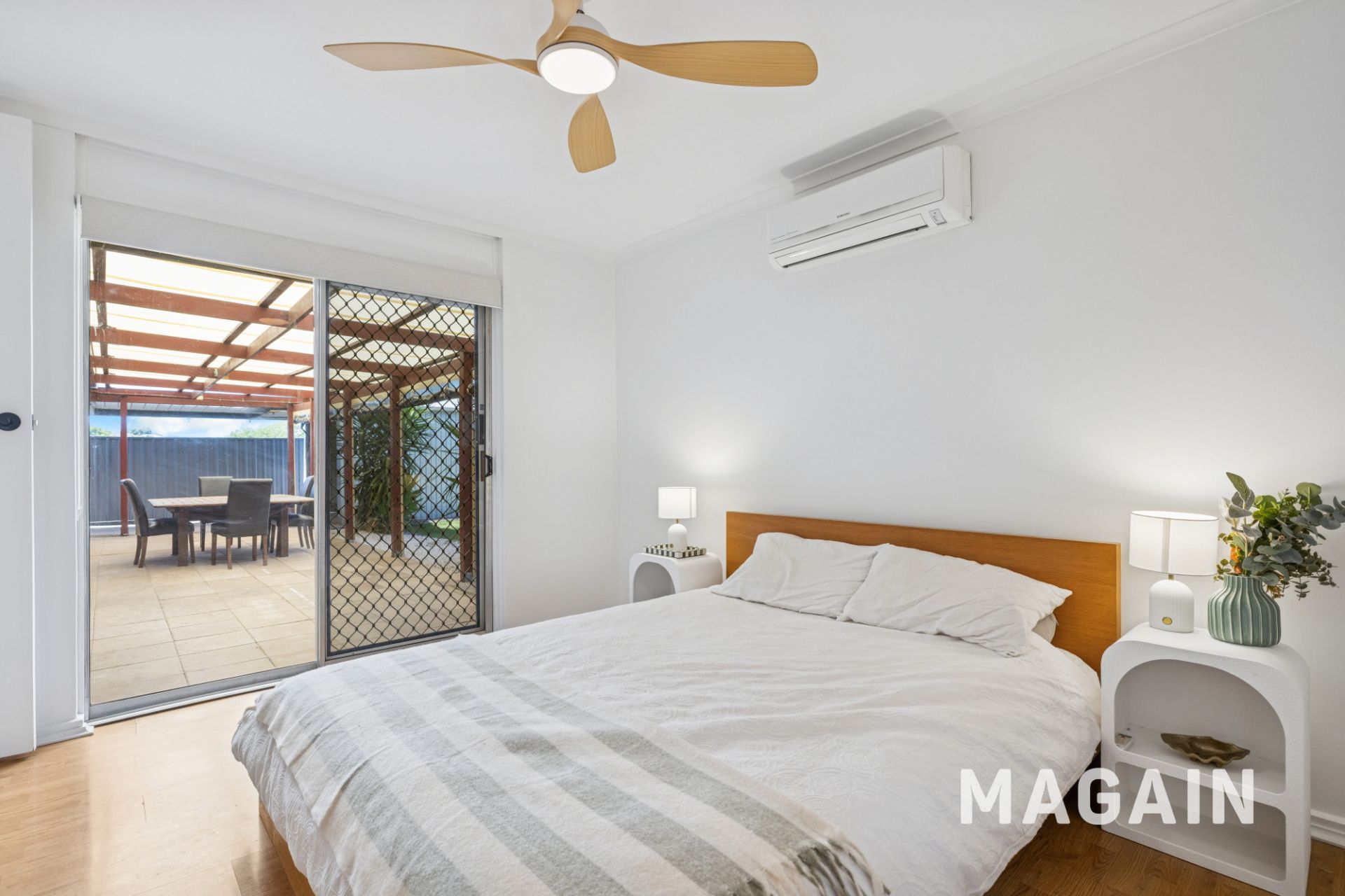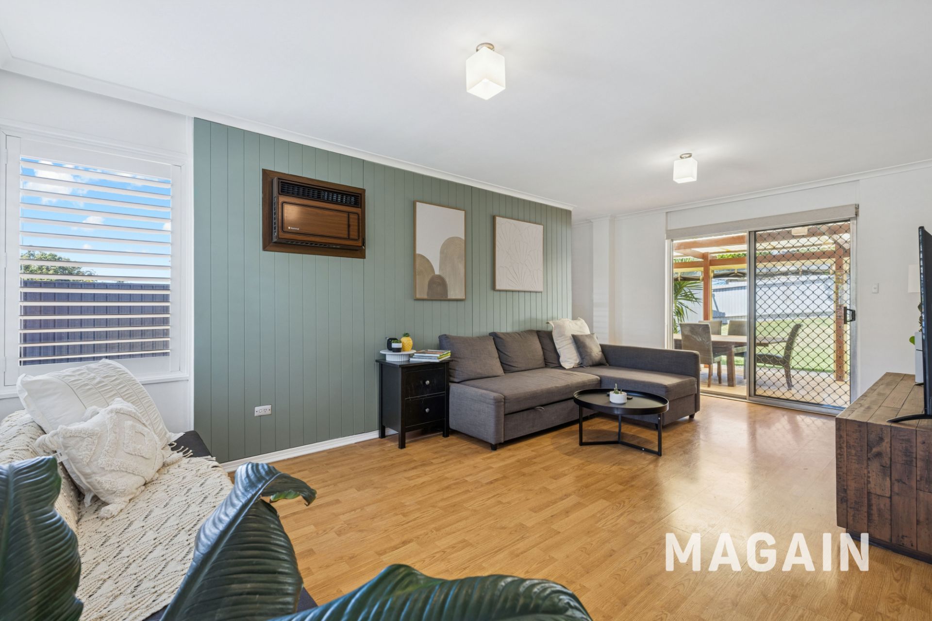 Step inside to discover a home that has been thoughtfully renovated throughout, combining modern style with a highly functional layout. The central living room is generous in size and features an air conditioning unit, and sliding doors that open directly to the outdoor entertaining area, creating an effortless indoor–outdoor connection. Adjacent to this space is the dining area, perfectly positioned between the living zone and kitchen for easy everyday living and entertaining.