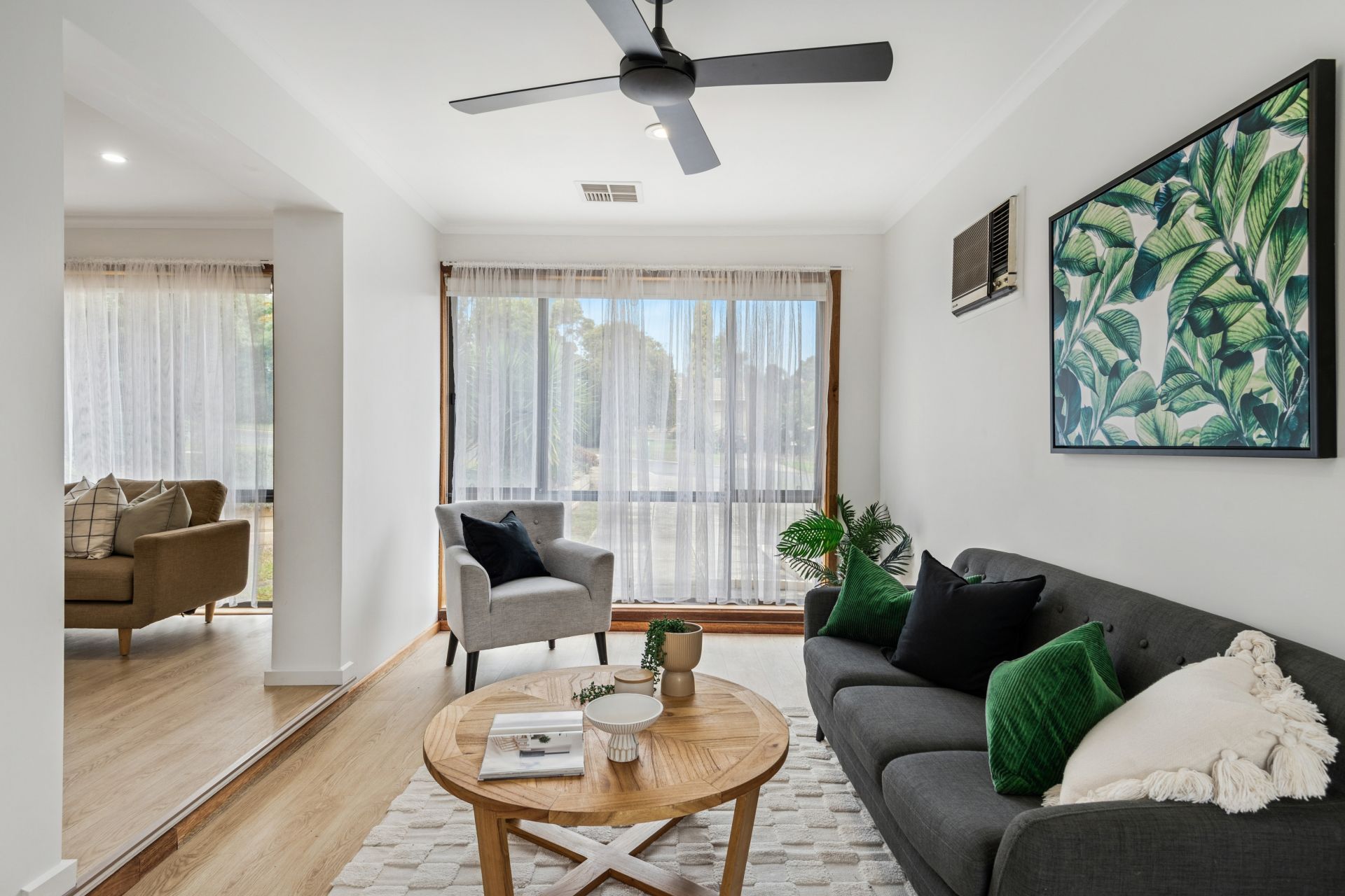 Step inside to a spacious entrance hall and discover a versatile floor plan designed for family living. The formal lounge and dining area sit adjacent to the kitchen, which is well-equipped with a gas stovetop and dishwasher. A second living area flows seamlessly to the backyard, perfect for entertaining or relaxing. The main bedroom features a built-in robe and ceiling fan, while bedrooms two and three also include built-in robes and ceiling fans for comfort. The study offers an unique advantage with its own external entrance, ideal for a home office or studio setup. A generous, private backyard provides the perfect space for kids to play for hours, featuring a charming cubby house and plenty of room for outdoor fun. Enjoy the convenience of two driveways offering ample off-street parking, including one with direct access to a powered backyard shed.