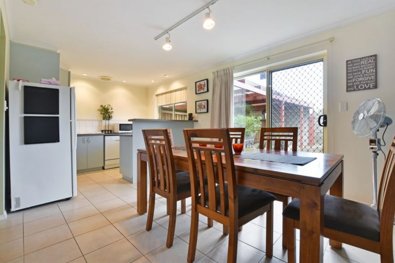 > Open plan kitchen and dining area, kitchen with ample storage and dishwasher