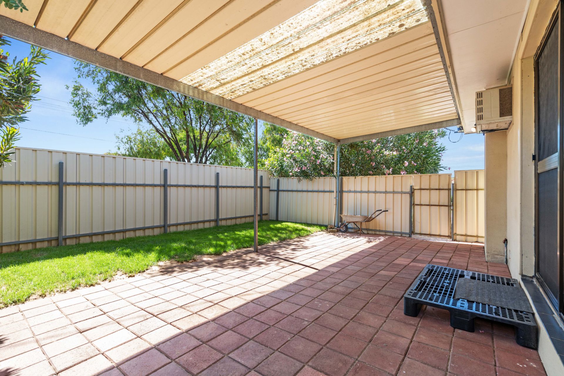 Low maintenance yards and under cover outdoor entertaining area.