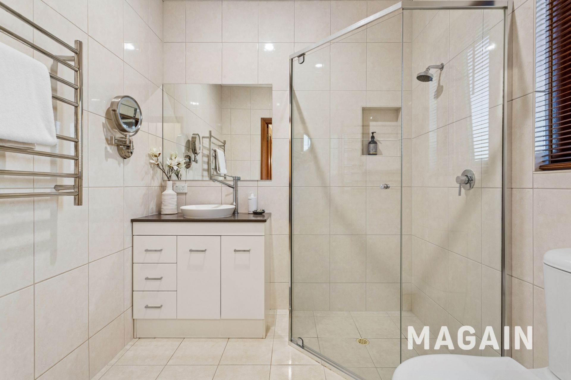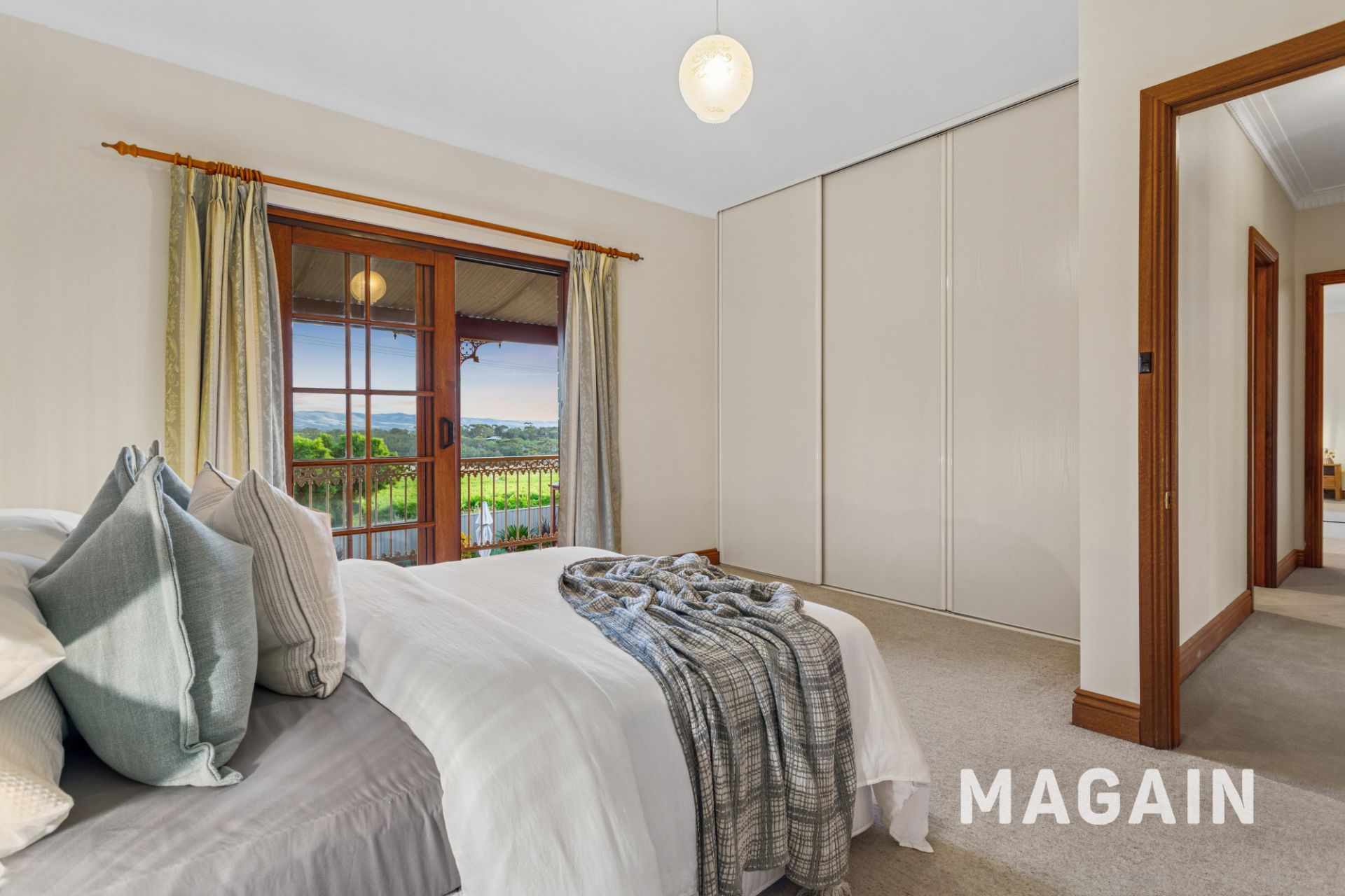 The lavish master suite captures northern views and includes a walk-through dual-sided robe leading to a beautifully updated ensuite with stone benchtops and floor-to-ceiling tiling. Bedroom 2 also enjoys front-of-home positioning with a built-in robe, while Bedrooms 3 and 4 both feature built-in robes and sliding door access to the rear balcony-perfect for appreciating those uninterrupted vineyard and hillside vistas.