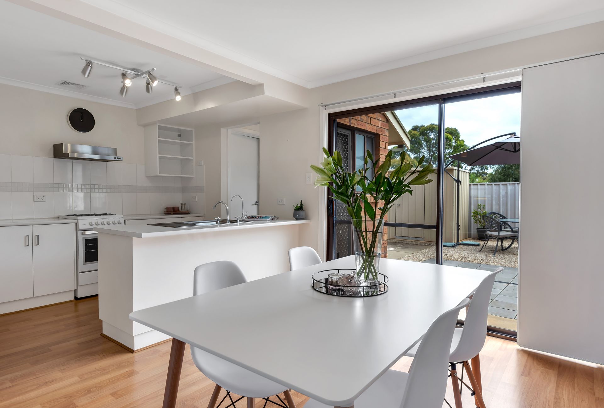 Moving inside you will be wowed by the sense of grandeur this home has to offer. A fantastic size living room is at the front of the home which flows smoothly to the dining room and kitchen. The kitchen has ample bench and cupboard space and features a gas cooktop. The laundry and second toilet complete the downstairs of the home.
