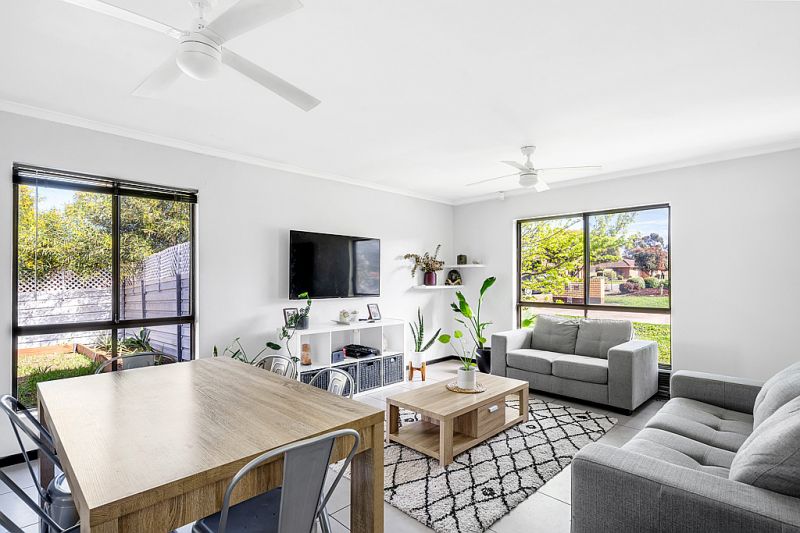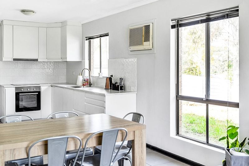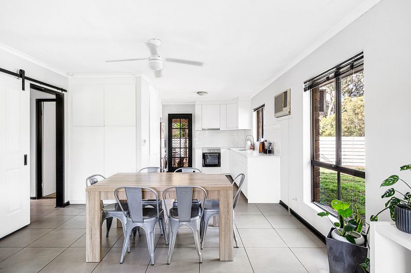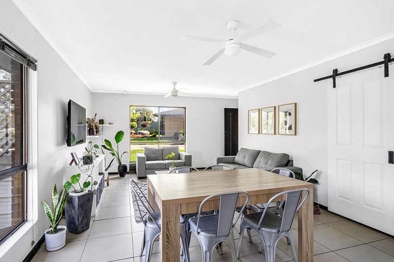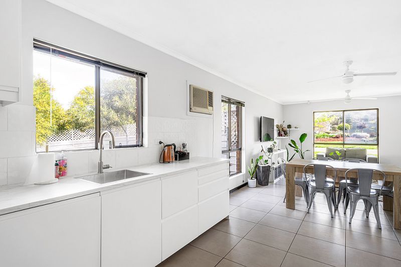 As you enter the home you are greeted by the open plan living, dining and kitchen which is flooded with natural light and has been tastefully renovated to maximise the space and function. The two ceiling fans and split system air-conditioner are great for year-round temperature control. The kitchen is the star of the home boasting an abundance of storage with beautiful white cabinetry, stainless steel appliances and fixtures and a hidden dishwasher. The laundry nook adjacent to the kitchen means you won't compromise on space.