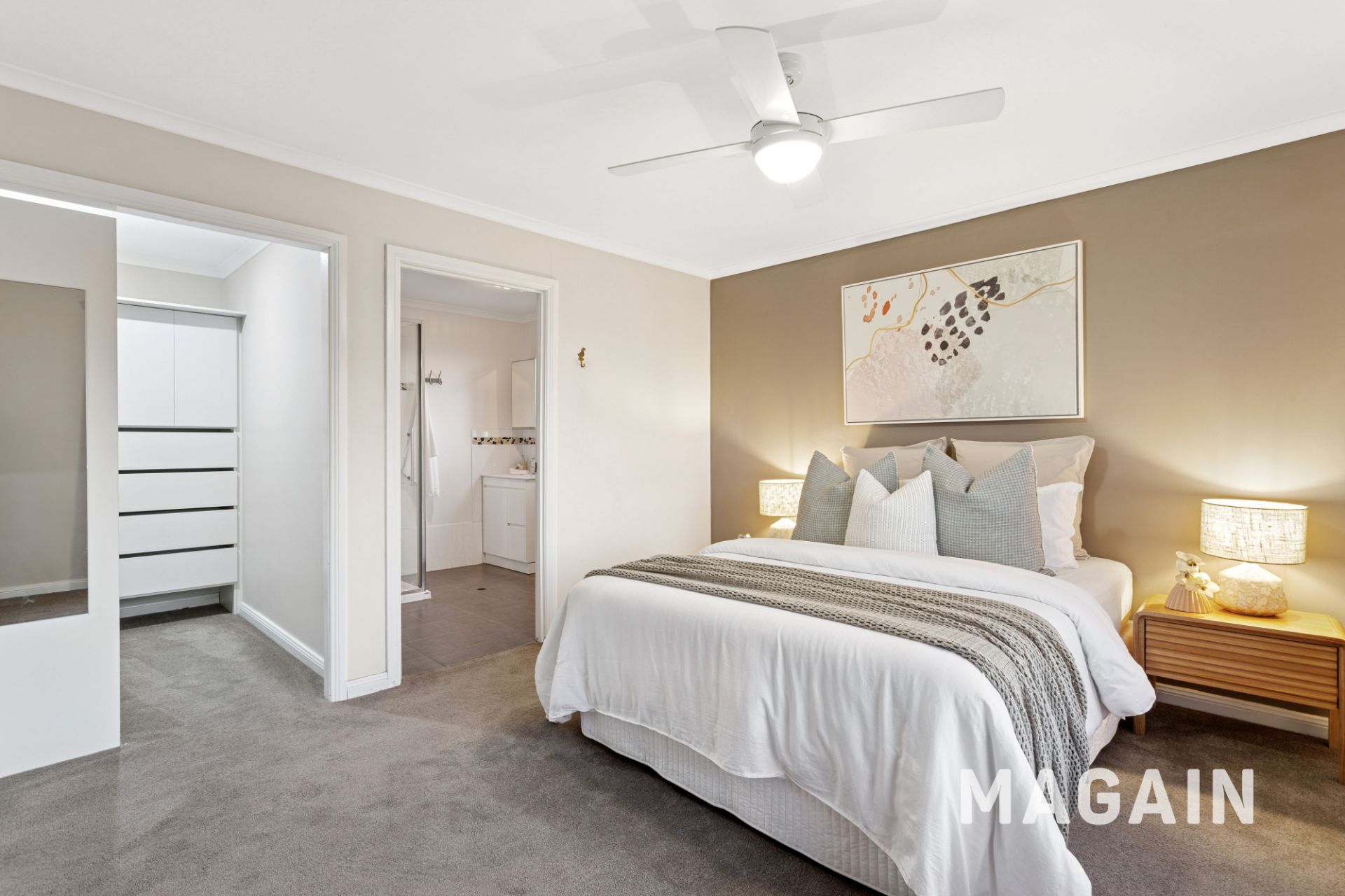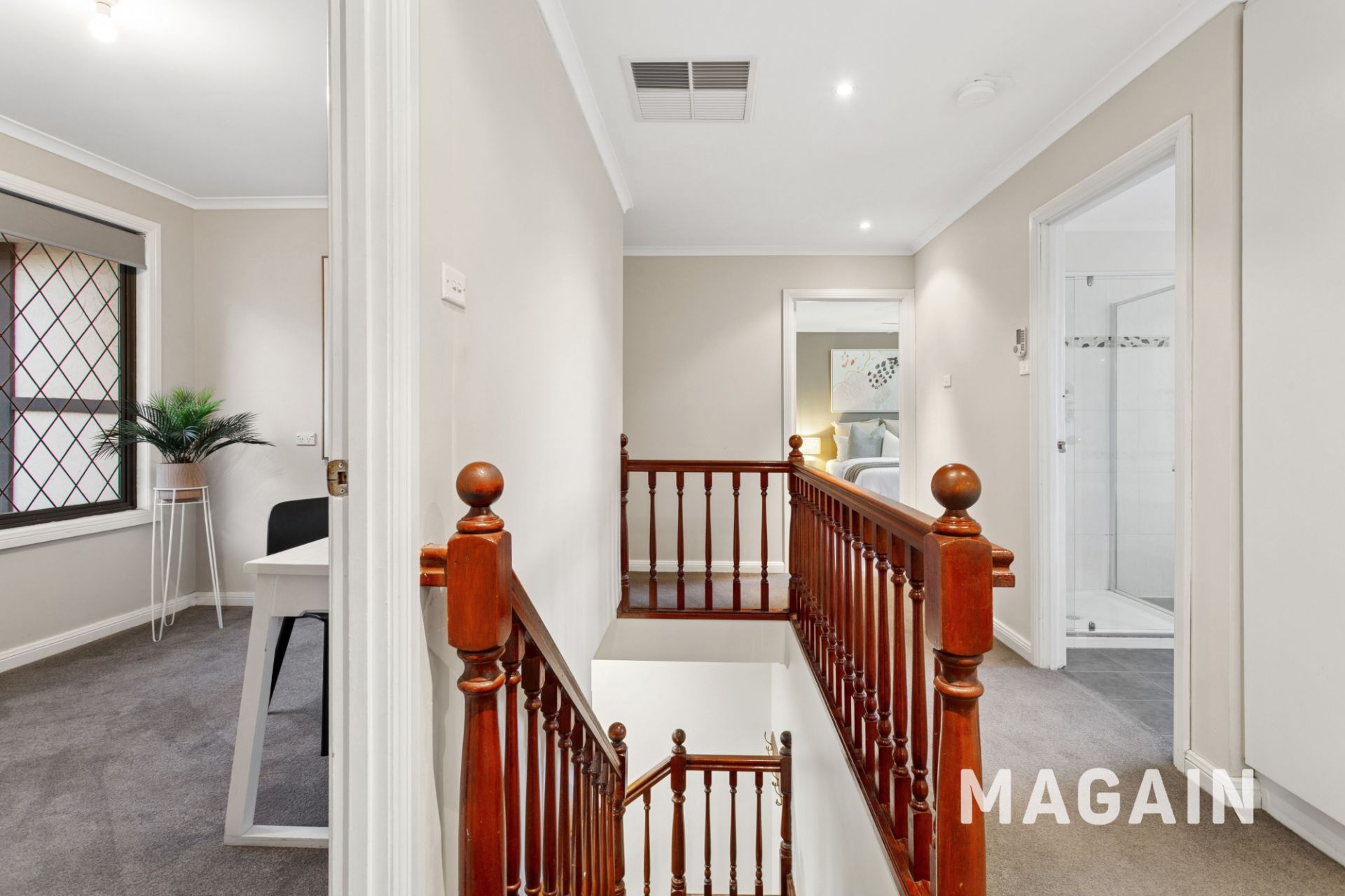 Upstairs, the home's sleeping quarters offer exceptional accommodation. The generous main suite captures views across the vines to the ocean beyond and includes a stylish ensuite, walk-in robe and ceiling fan. Bedrooms two, three and four all feature built-in robes and ceiling fans, while bedroom five or study provides flexibility to suit your lifestyle needs.
