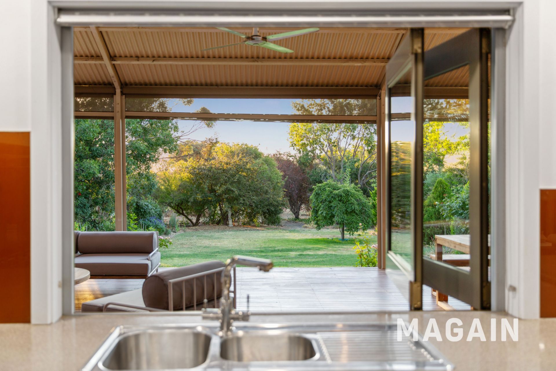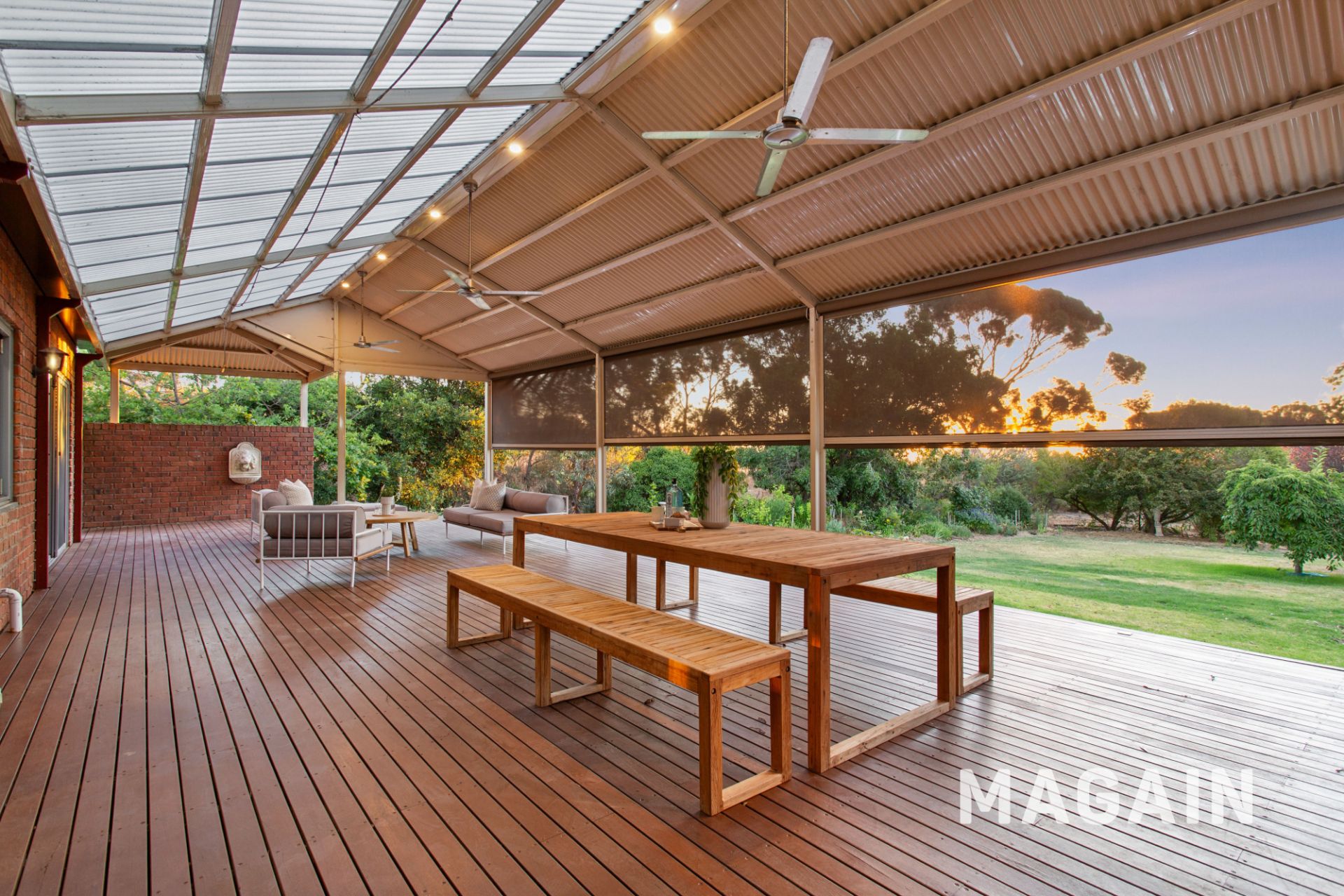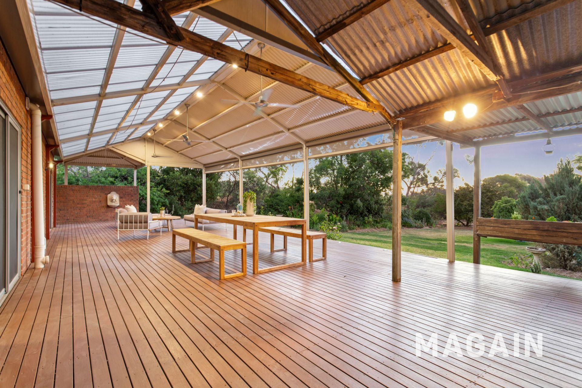 Outdoor living is where this property continues to shine. Stackable sliding glass (double glazed) doors from both the casual meals area and formal lounge open to a full-length, timber-decked undercover entertaining area, complete with pull-down blinds and three ceiling fans, making it a private and usable space year-round. Beyond, the vast yet low-maintenance backyard includes established fruit trees, vegetable patches, and room to adapt to your vision. A fenced chicken coop with roaming space enhances the rural feel and provides fresh eggs at your doorstep.