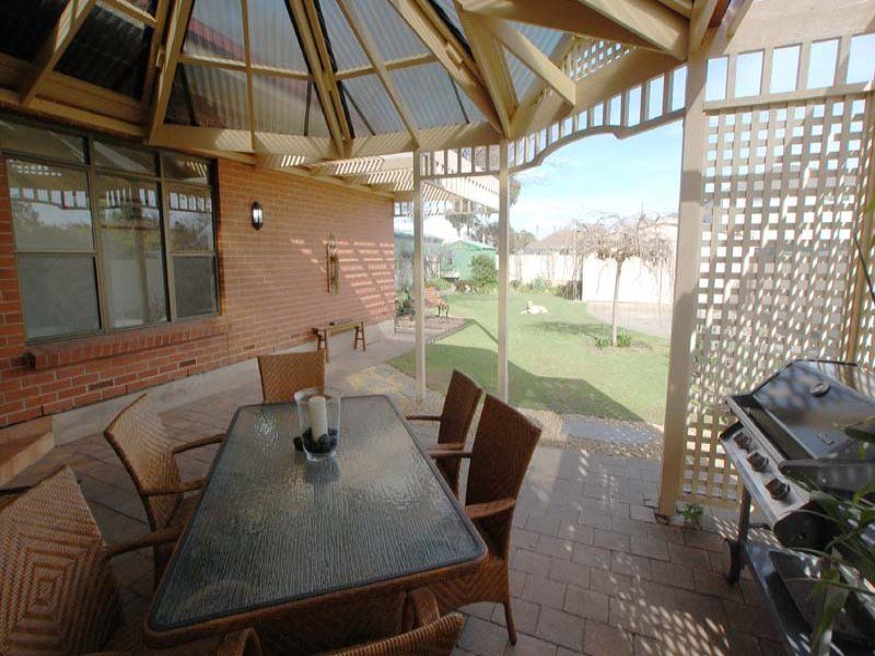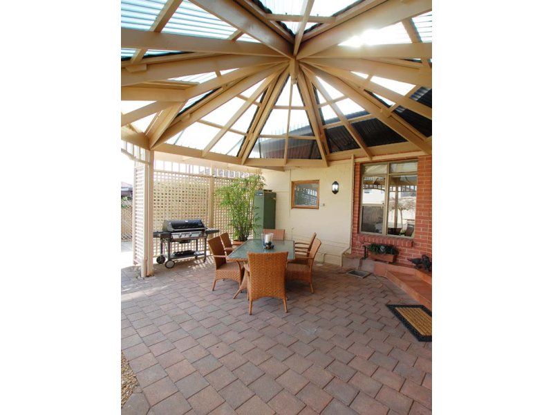 Outside is a large gabled undercover pergola entertaining area with natural gas and a large double garage at rear.