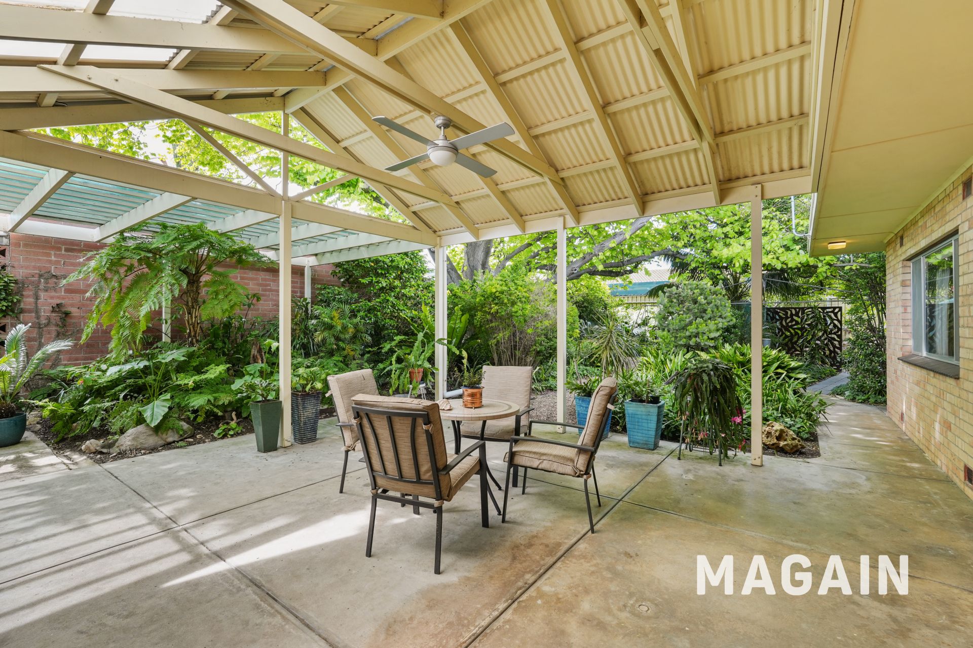 Outdoors, the garden offers a beautiful combination of greenery, established trees and a relaxing sense of privacy. A pergola added five years ago creates the perfect spot for entertaining, while the automated watering system and garden shed add ease and practicality to everyday living.